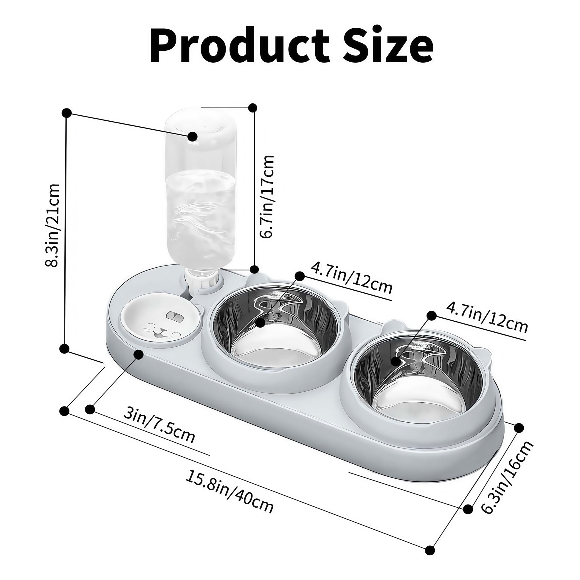 3 in 1 Katzennapf, Katzenfutter und Wassernapf Set mit Wasserspender und Edelstahlnäpfen