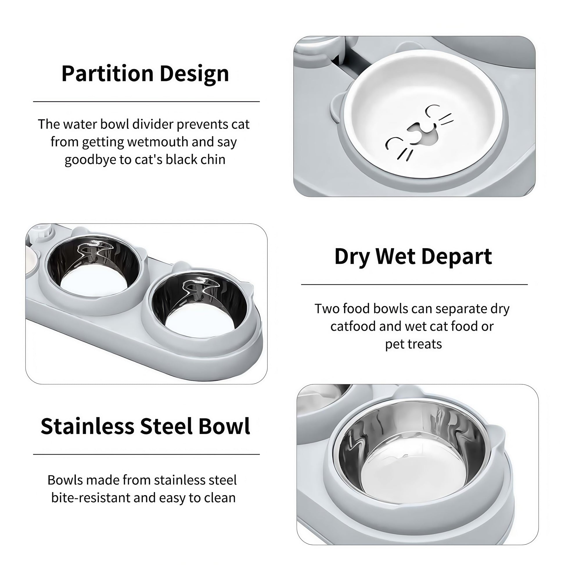 • ⭐【3 in 1 Katzennäpfe 】Katzenohren geformt Katzenfutternapf mit 15° Neigung und komfortablem 7cm erhöhtem Halterungsdesign, Katzenfutterschalen für Indoor-Katzen schützt die Halswirbelsäule Ihres Haustieres und ist die beste Fütterungsposition. Drei-Schüssel-Design, automatische Wassernachfüllung, geeignet für verschiedene Kätzchen sowie kleine Hunde