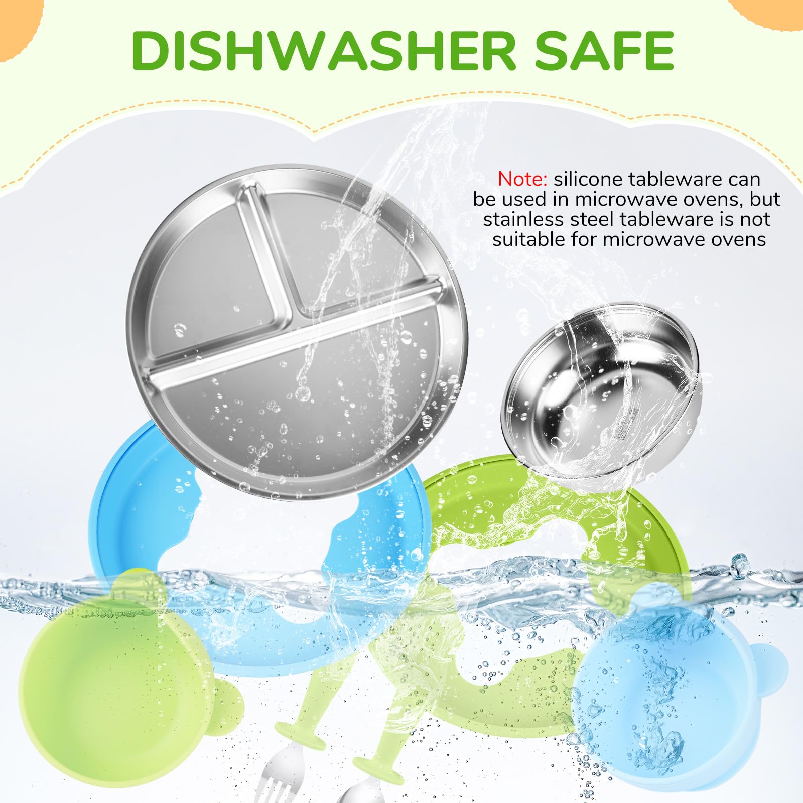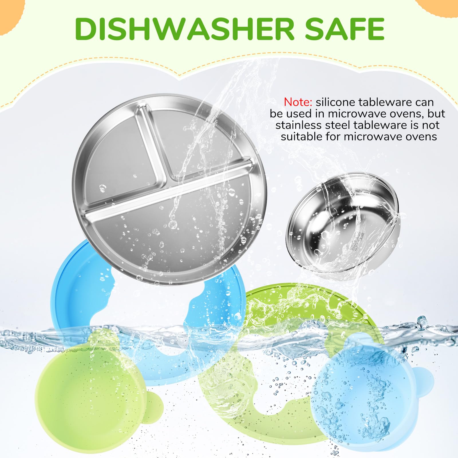 - DISHWASHER SAFE Our stainless steel baby plates have a smooth surface so stains like carrot porridge can be easily removed. Unbreakable and a perfect alternative to fragile ceramic or plastic plates! Ideal for busy families.