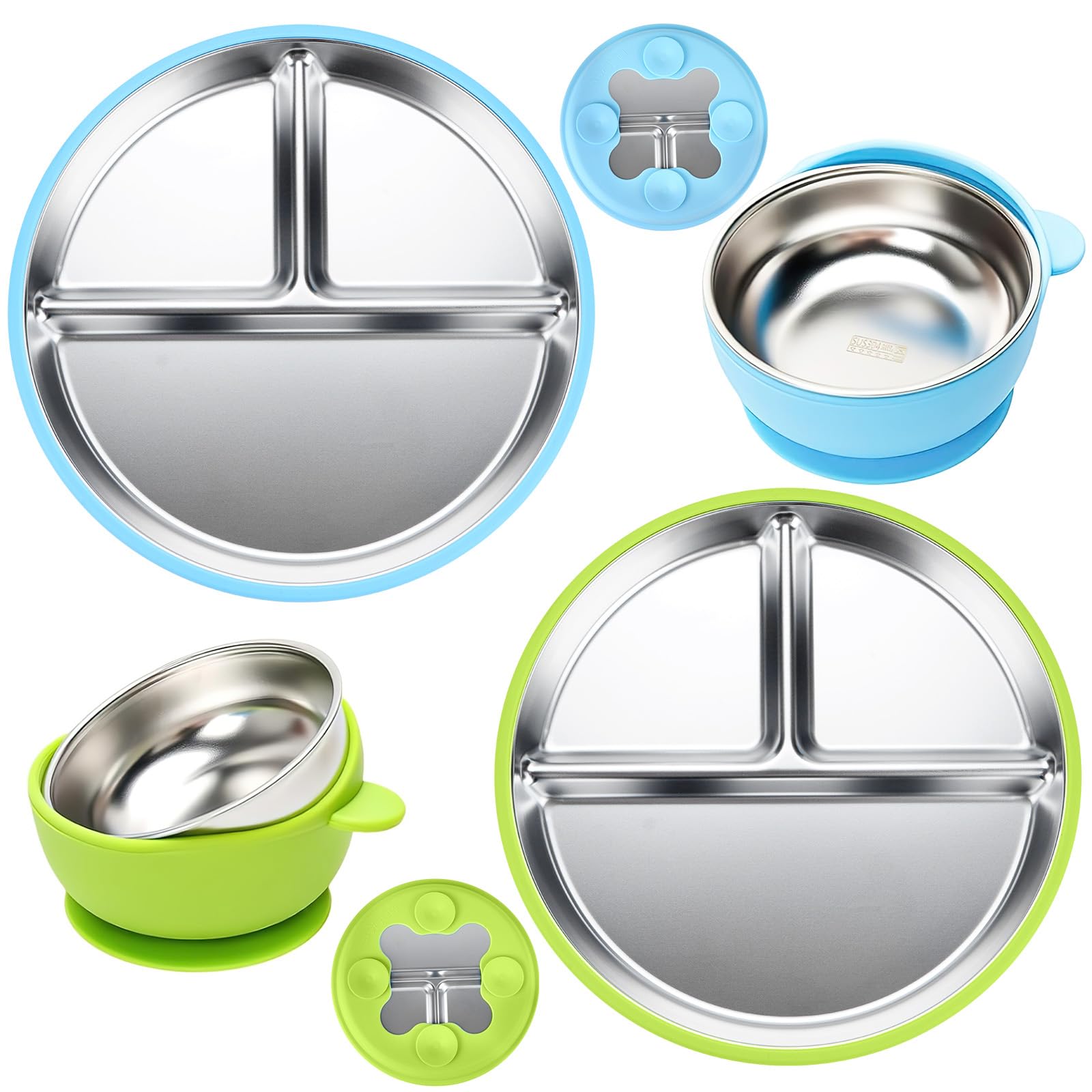 - PERFECT GIFT FOR PARENTS AND BABY - The set includes 2 baby suction plates, 2 baby bowls and two sets of fork and spoon in kid-friendly colors - blue and green. Perfect for everyday use or as a gift for a birth or christening. These children's plates with suction cups are thoughtful gifts that bring joy both at home and on the go.