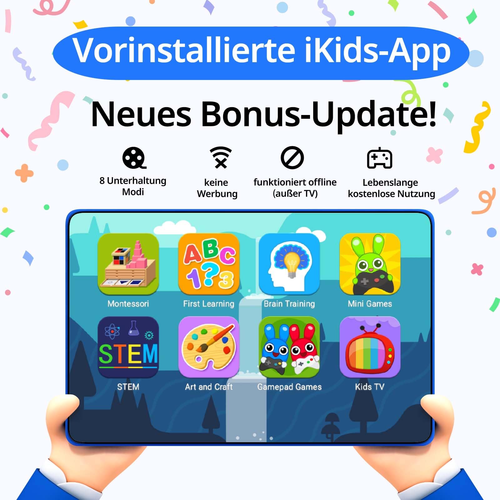 - Pre-installed Kids Space and iKids: Our children's tablet is already pre-installed with Kids Space, a teacher-approved program that offers a variety of interactive educational apps, books, games and videos to promote learning. We've also pre-installed iKids, which offers Montessori lessons, brain training, games, videos and more. It supports lifetime free, lifetime updates and no ads. iKids supports your children in offline play, except TV.