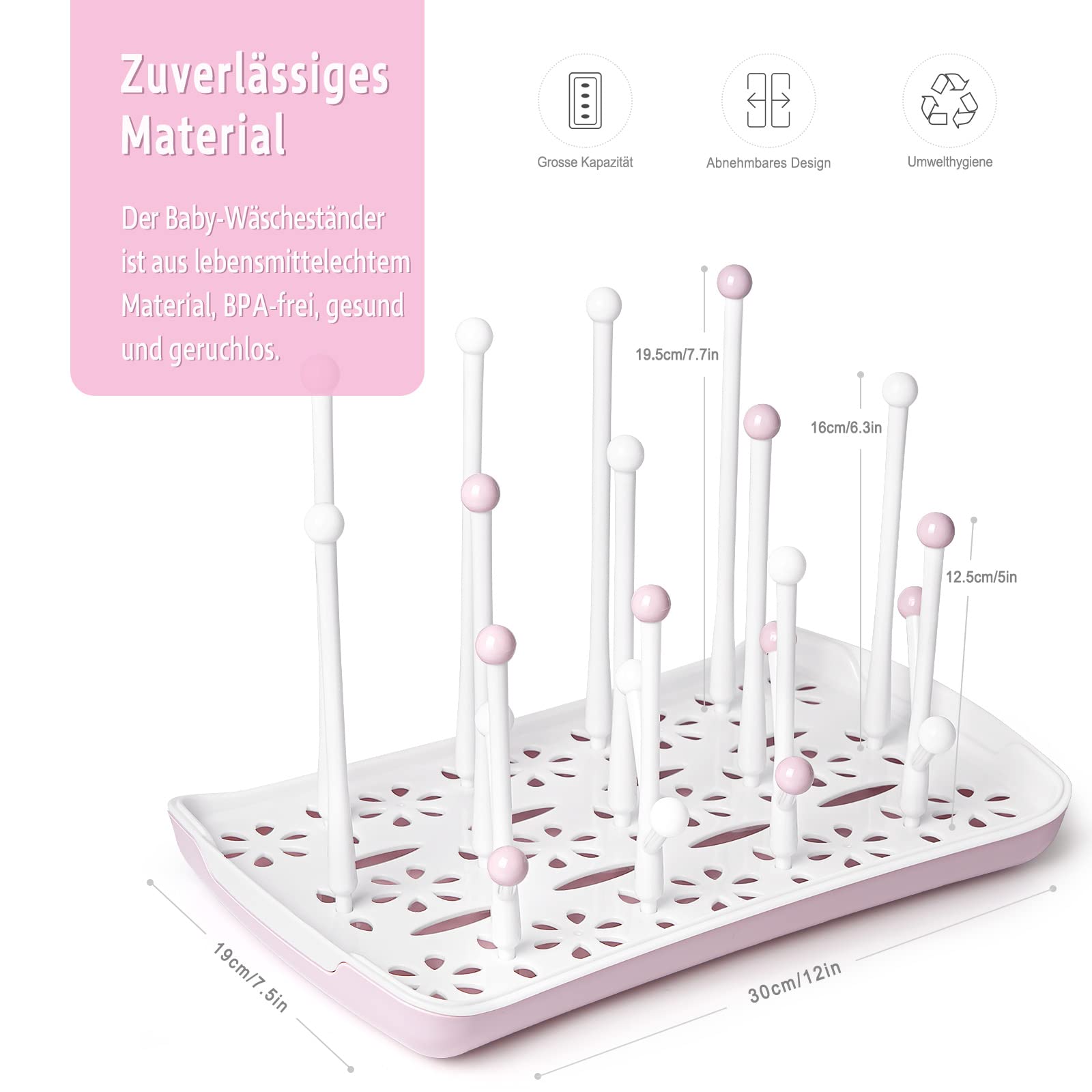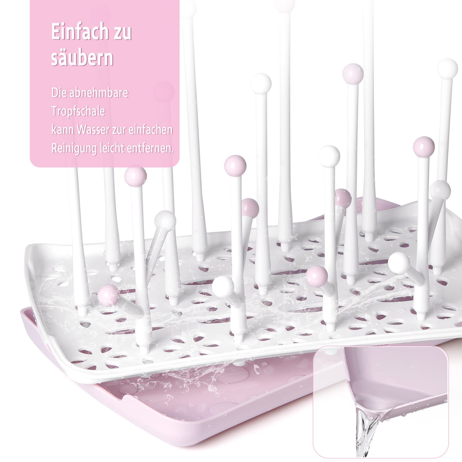 - MULTI-USE: Die unterschiedlich großen Stangen sind aus dickem Kunststoff und haben eine kugelförmige Konstruktion, um das Reiben von Babyflaschen zu verhindern. Sie können Flaschen jeder Größe, Schnuller und Nippel setzen. Funktioniert auch hervorragend für Glasbecher in Küche oder Badezimmer.