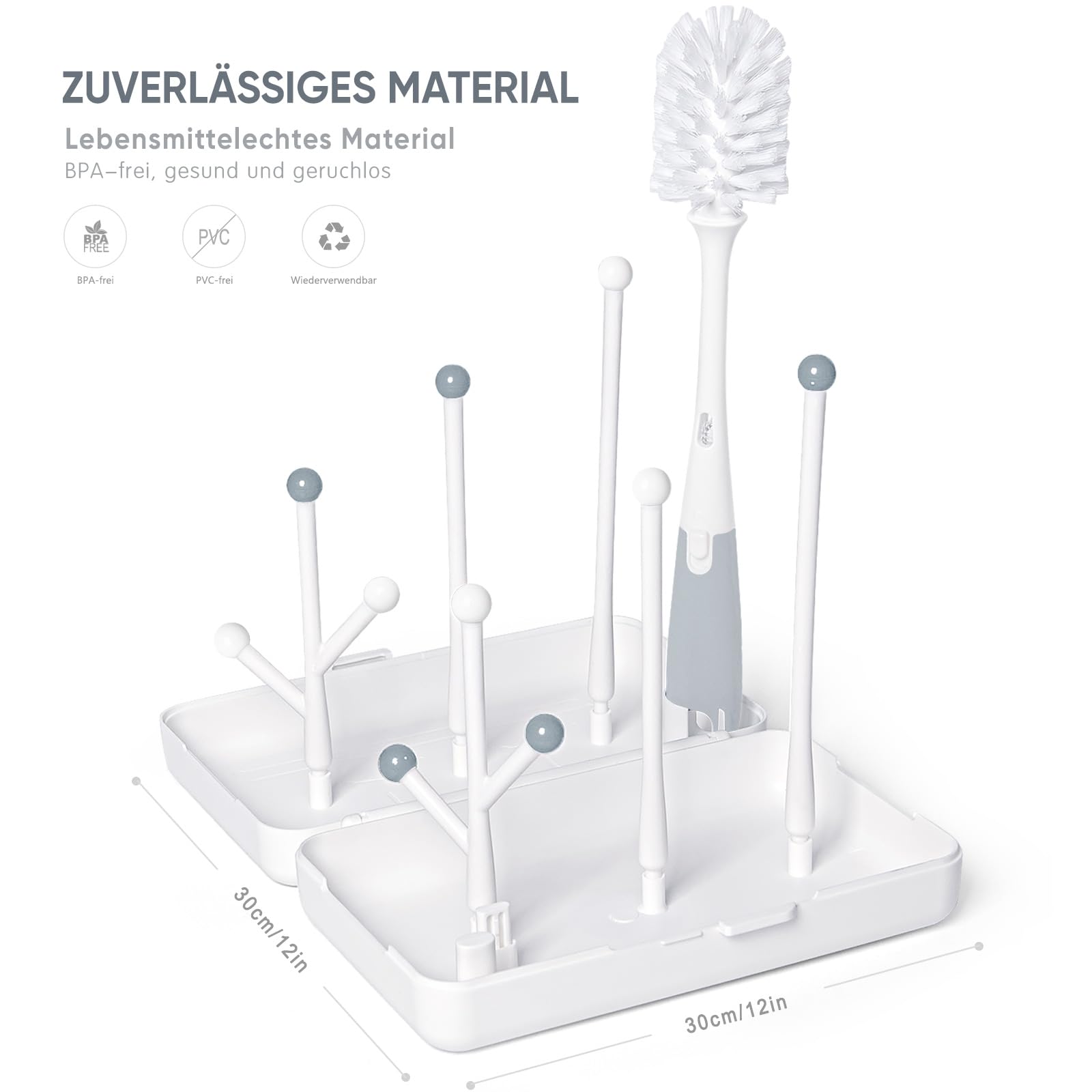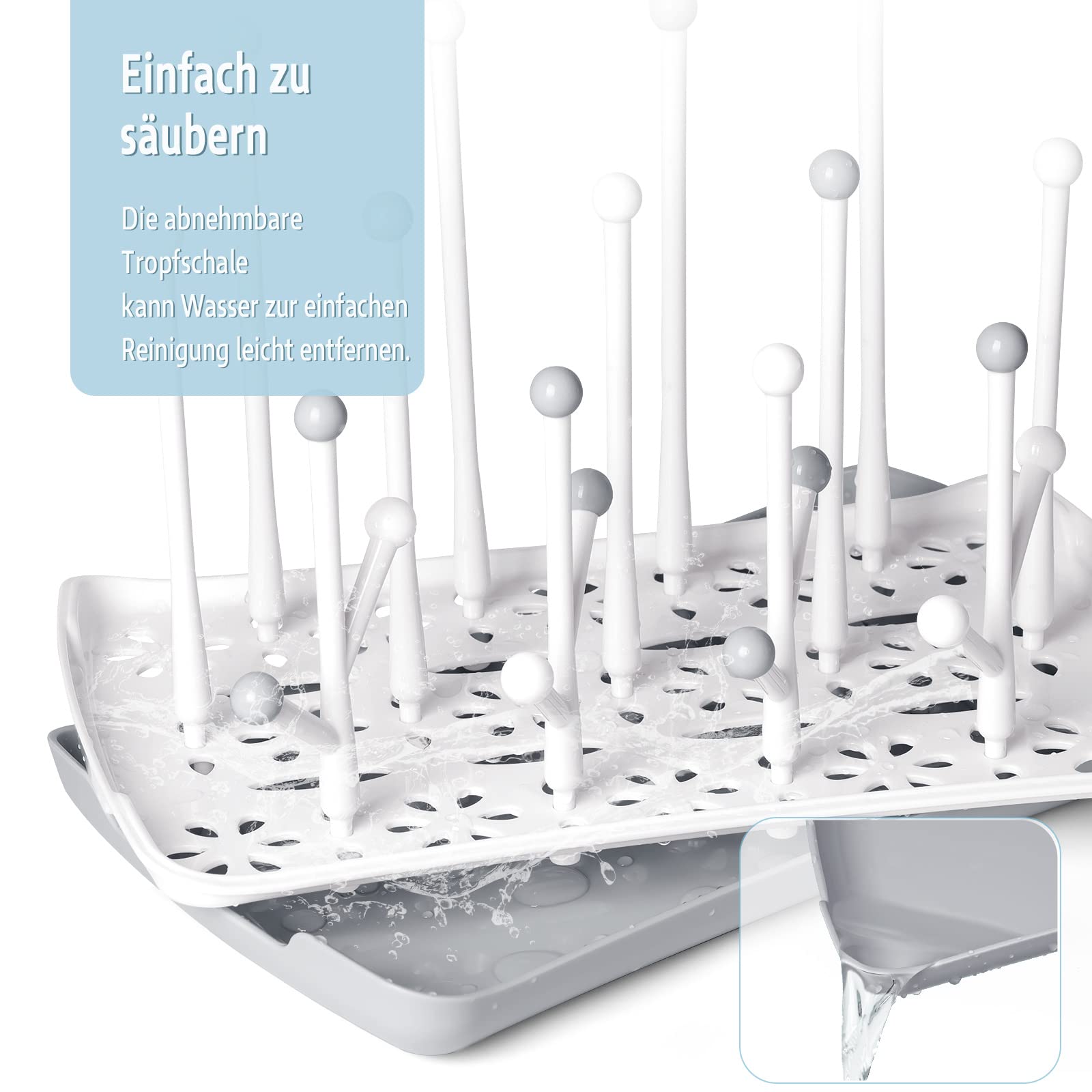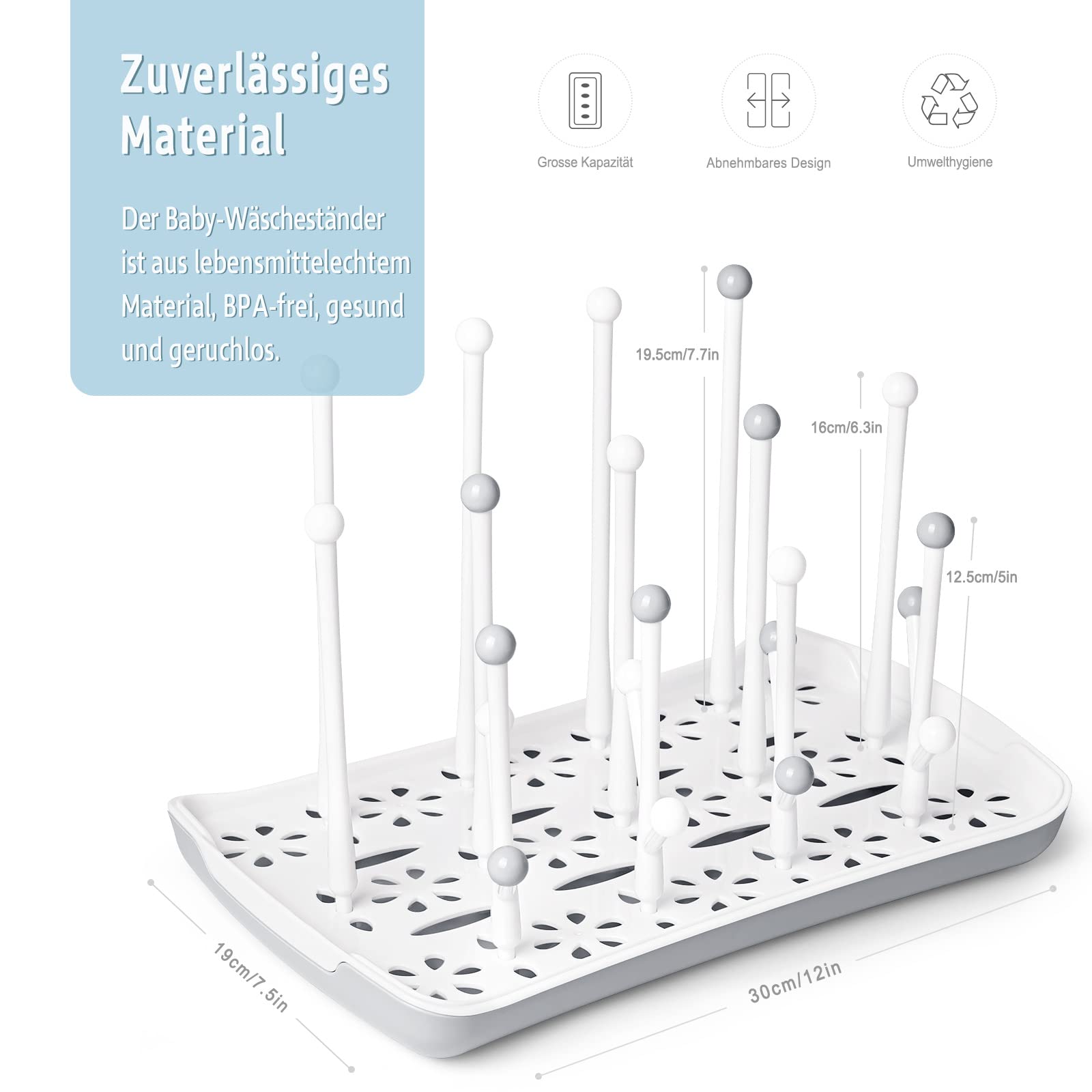 Trockenständer Babyflaschen, Abtropfgestell für Babyflaschen, Flaschen, grauSaugern