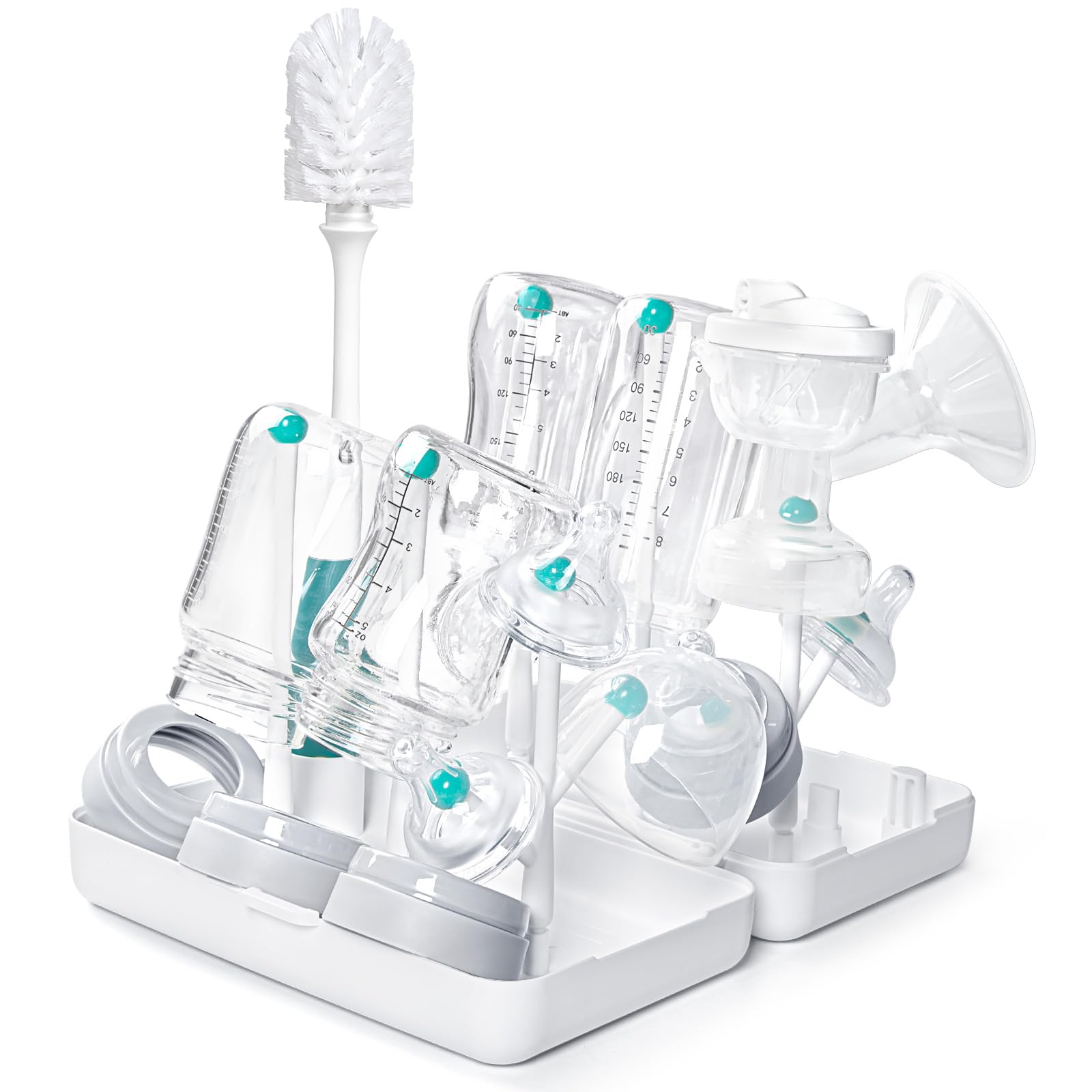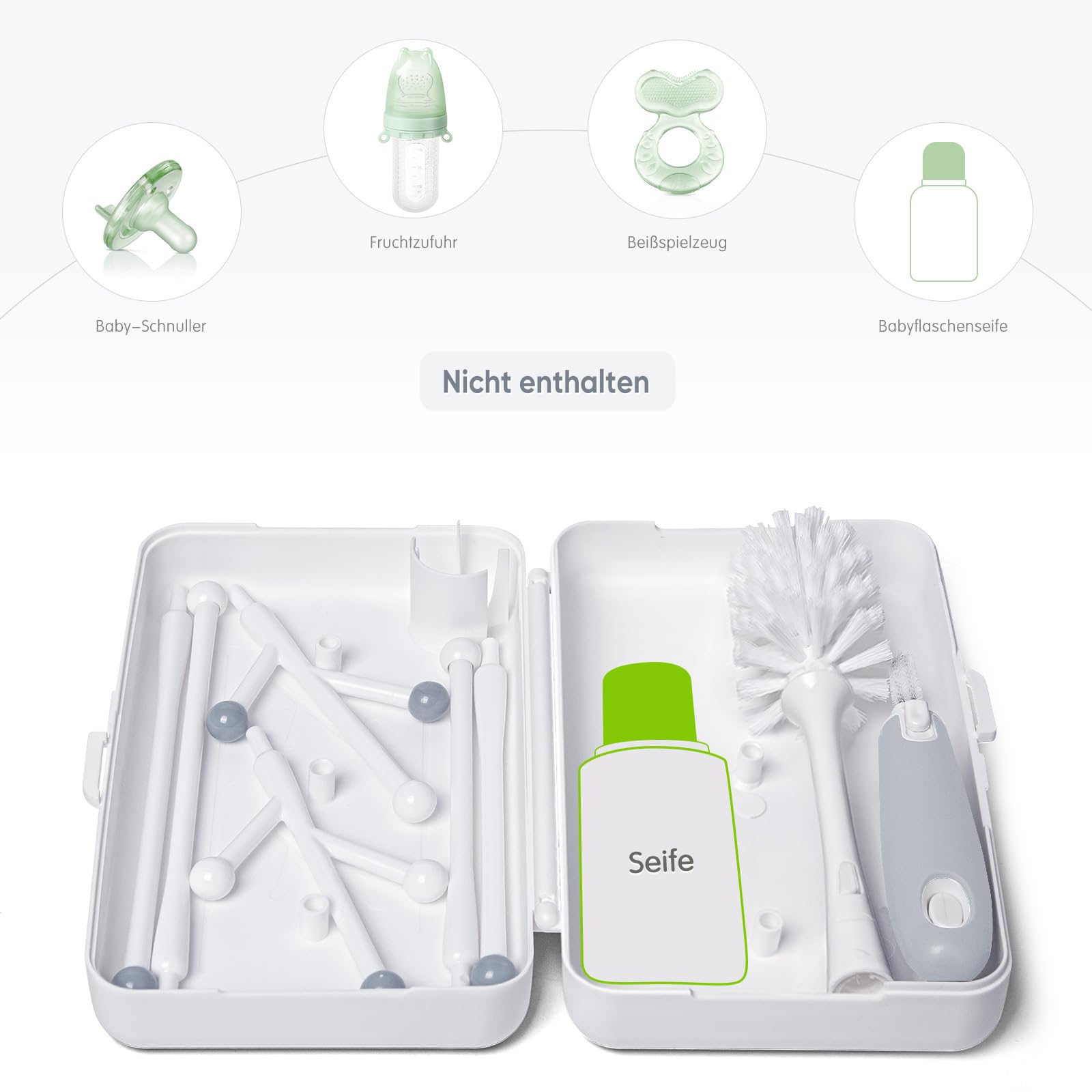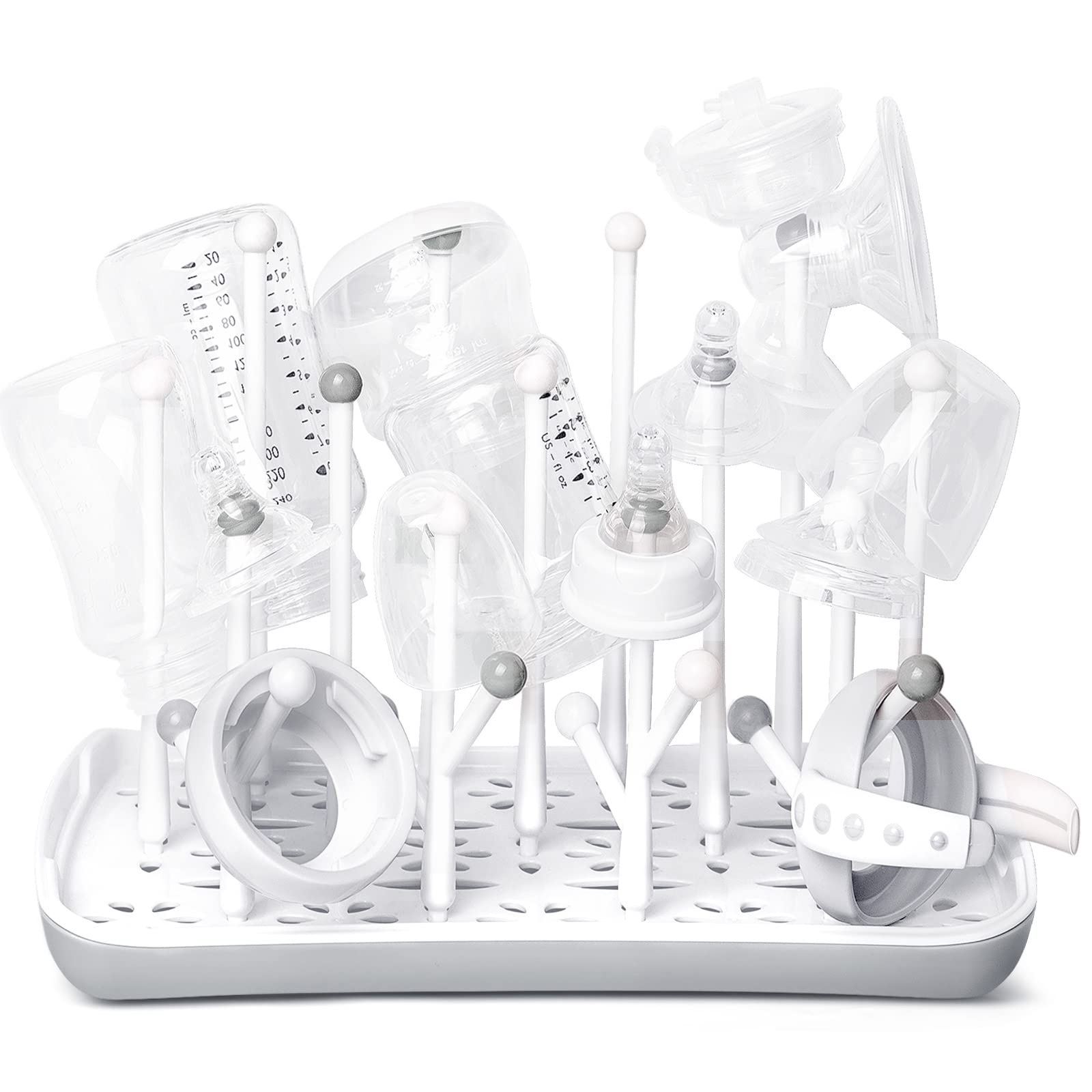 Trockenständer Babyflaschen, Abtropfgestell für Babyflaschen, Flaschen, grauSaugern