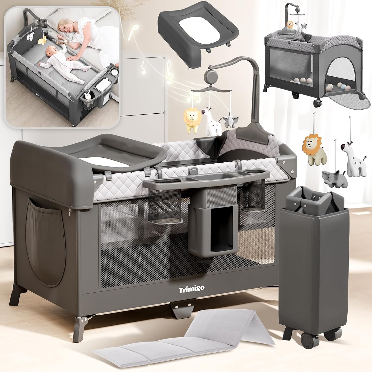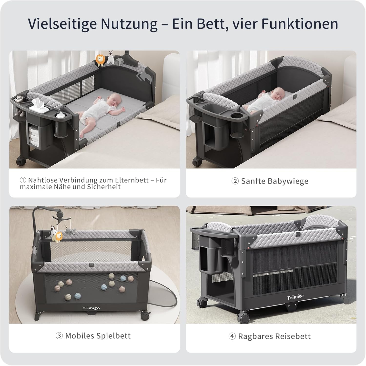 - Versatile baby travel bed: the Trimigo travel cot accompanies your baby from birth. It easily transforms into a baby bed, side bed, play gate, folding changing table and more. The complete baby room set offers maximum flexibility for every growth phase.