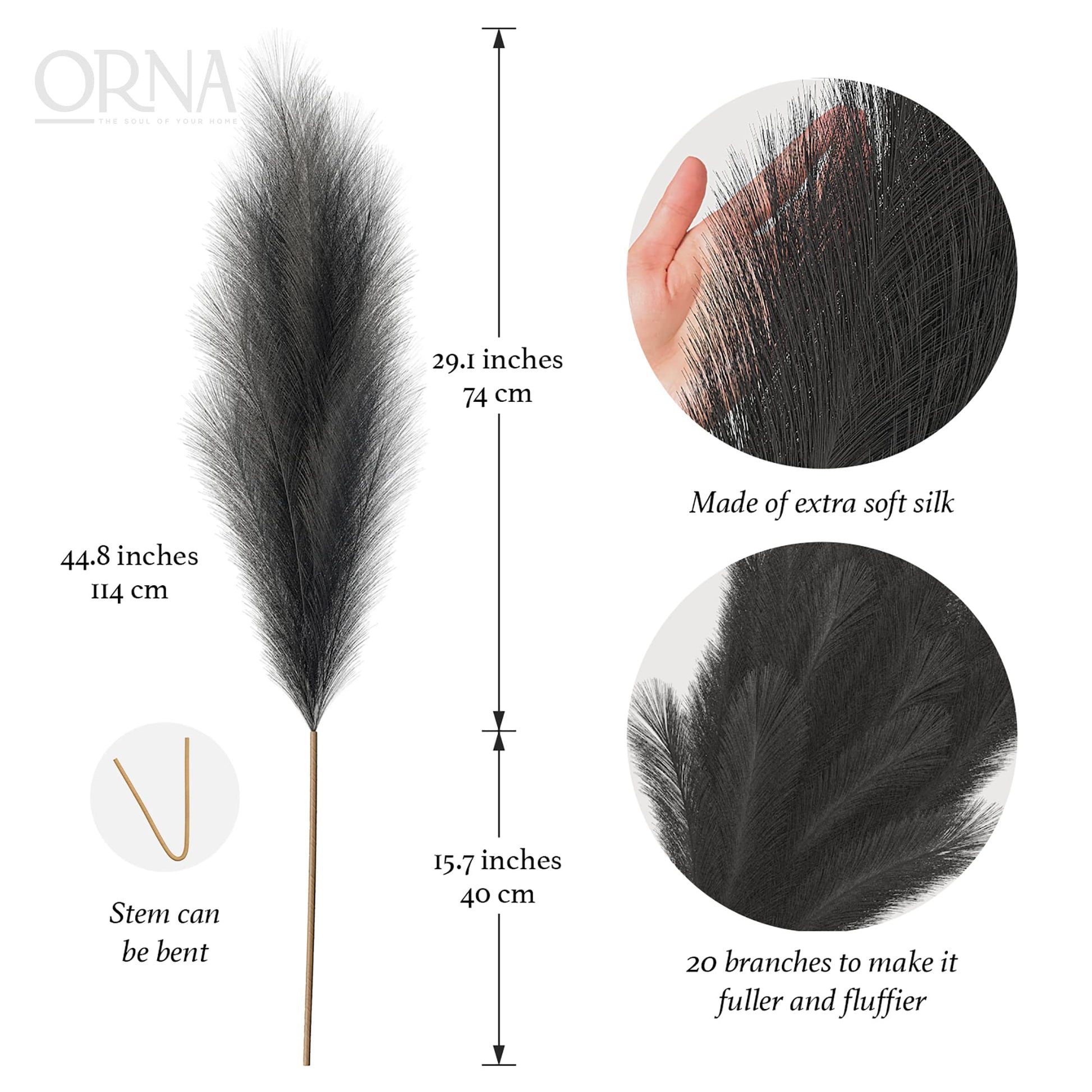 ORNA Artificial Pampas Grass Artificial Flower Long Branches Extra Fluffy 114 cm High (3 Stems x 20 Forks) for Modern Home Decoration