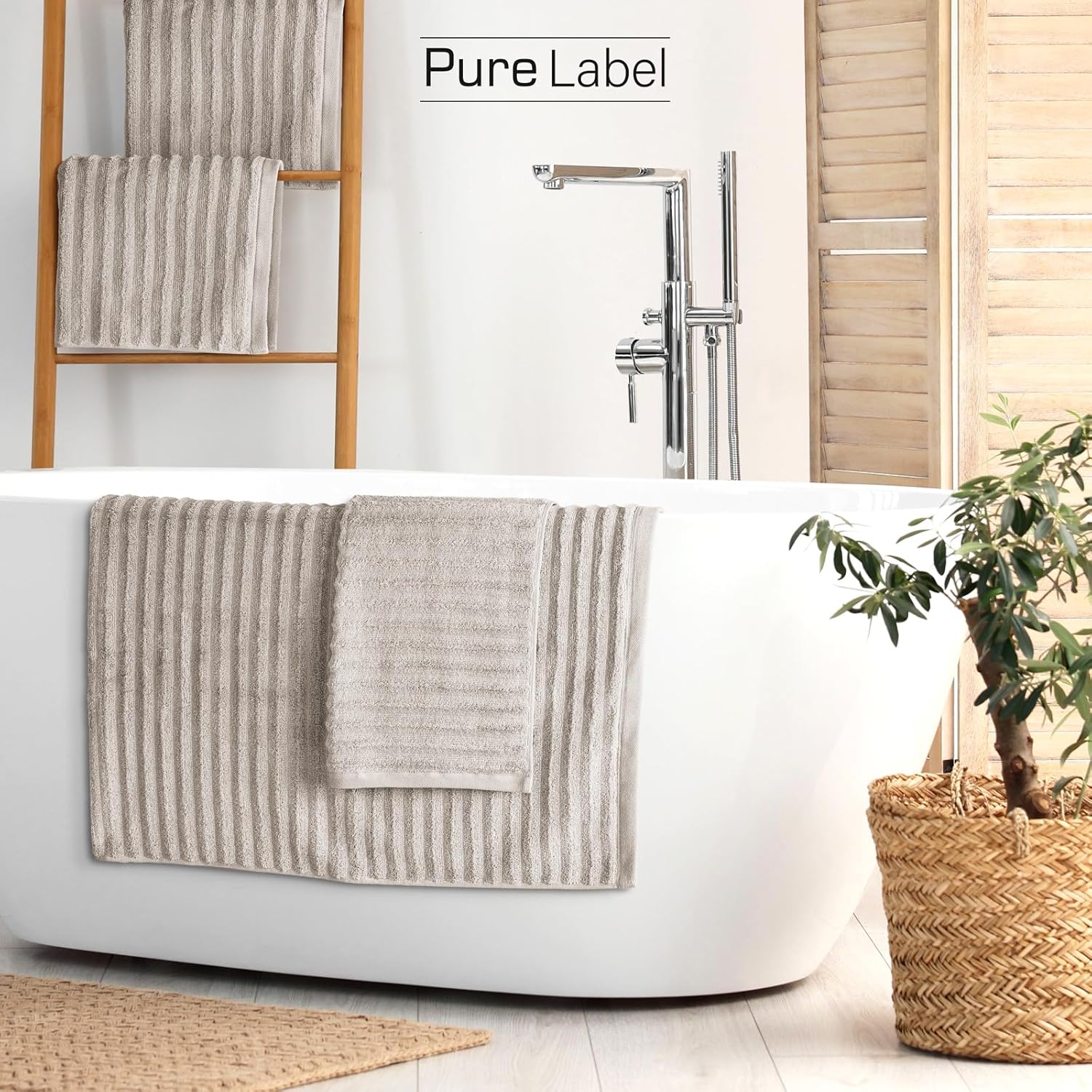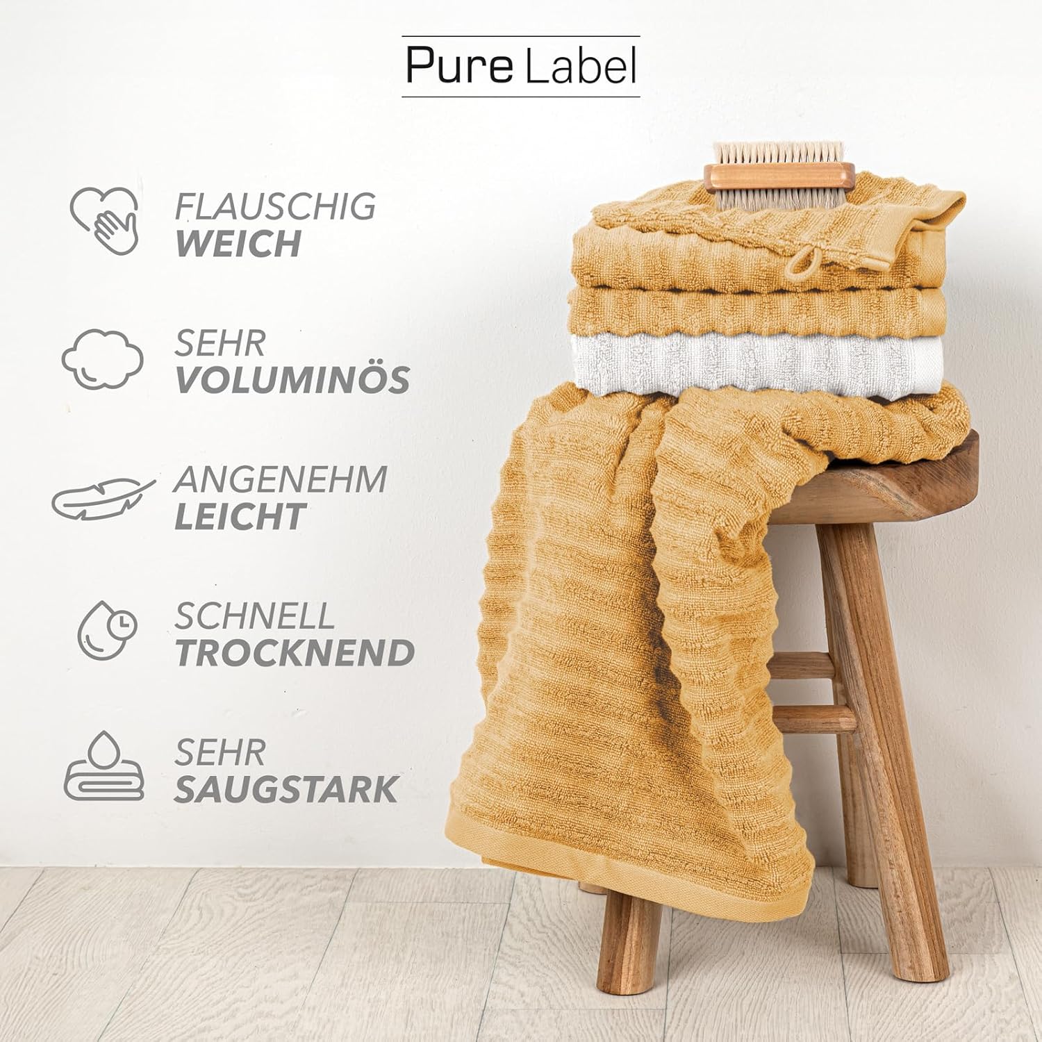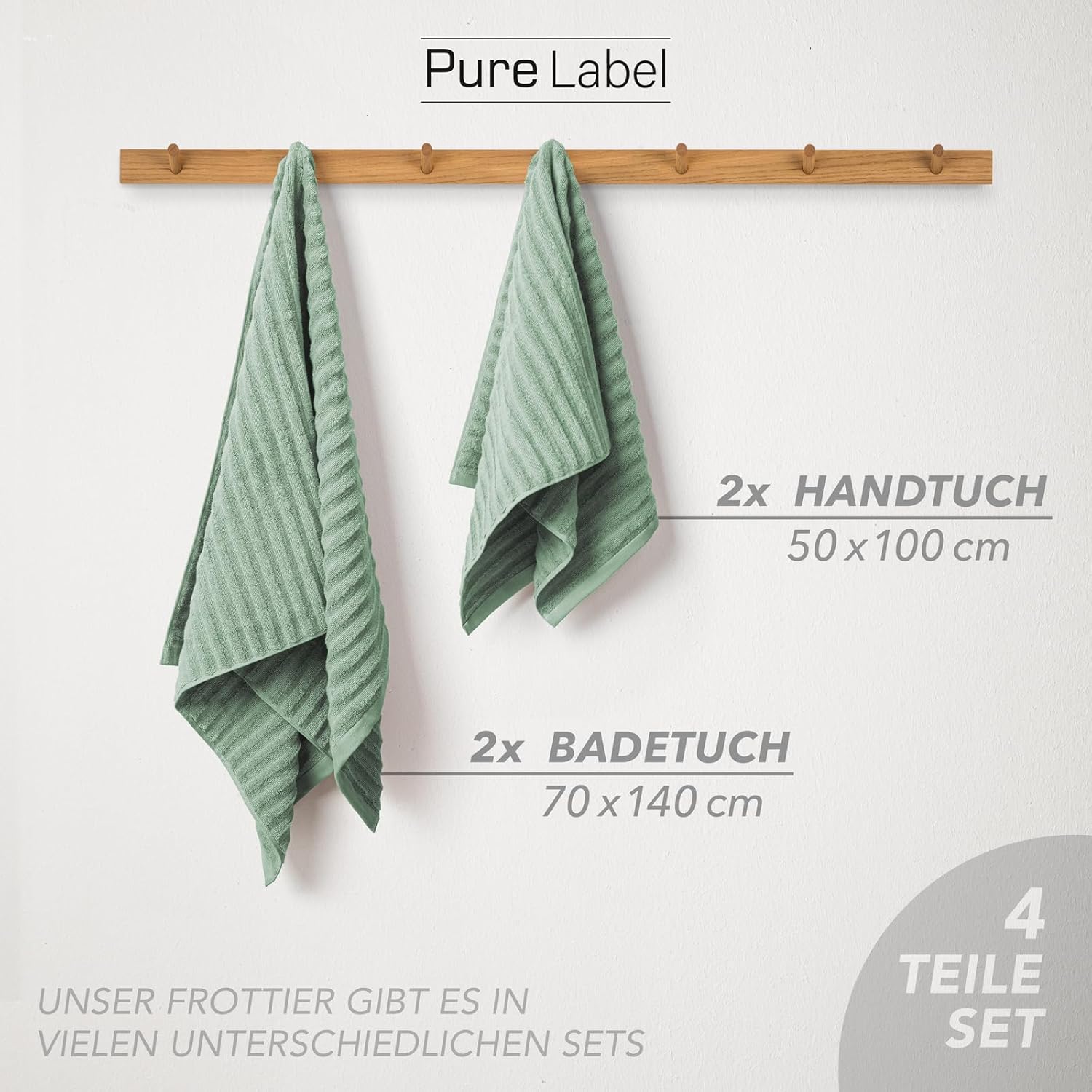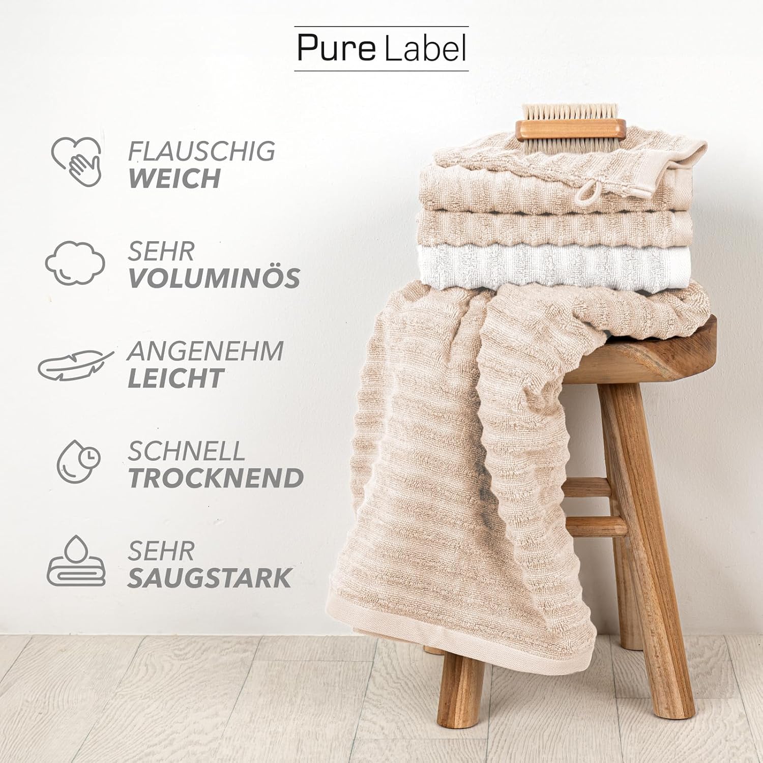 Pure Label 6-Piece Hand Towel Set with Hanging Loops Made of 100% Cotton, Absorbent and Soft, 2 x Bath Towels (70 x 140 cm), 2 x Hand Towels (50 x 100 cm), 2 x Guest Towels (30 x 50 cm),