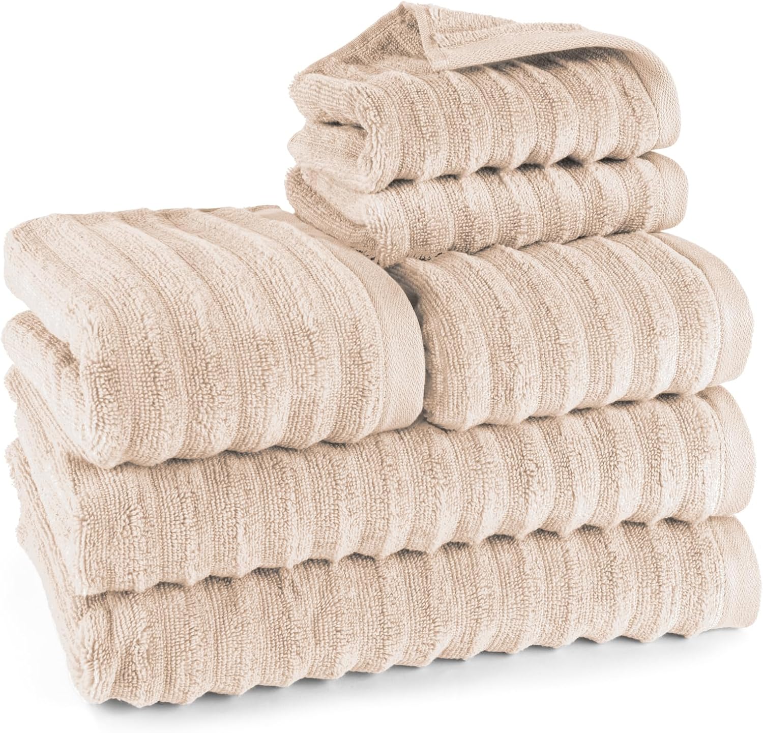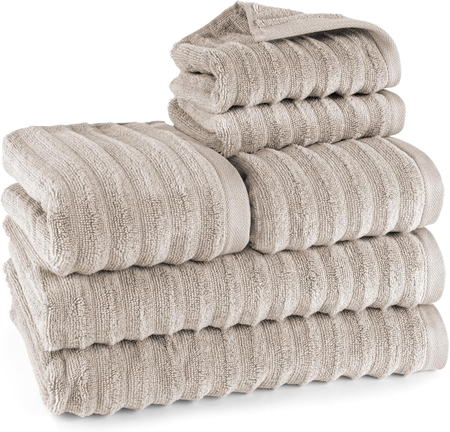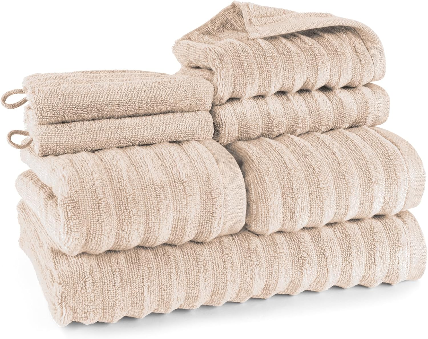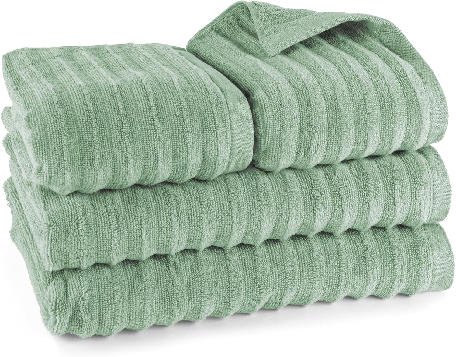 • Premium quality – our towel set made from 100% cotton: This luxurious and modern terry towel set offers a high level of comfort thanks to fluffy cotton and optimal absorbency. With a hanger on each part of the set.