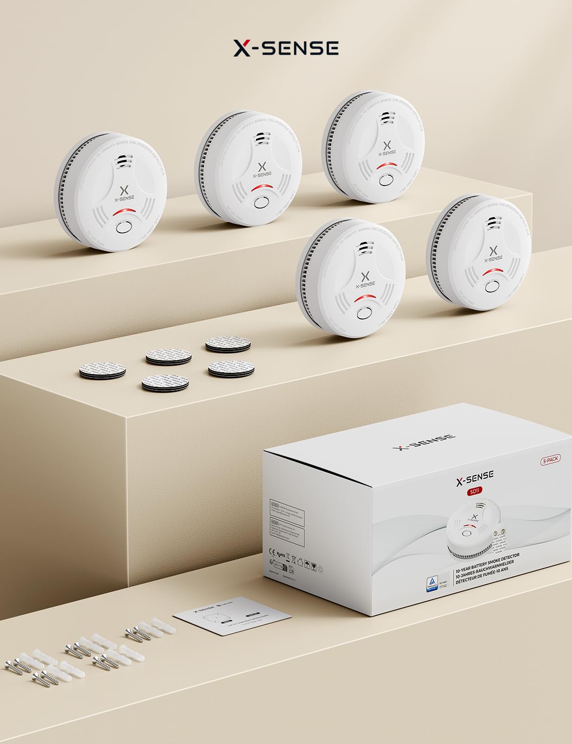 X-Sense Rauchmelder mit 10 Jahre Batterie und Magnethalterung, Feuermelder, TÜV Rheinland-Zertifiziert