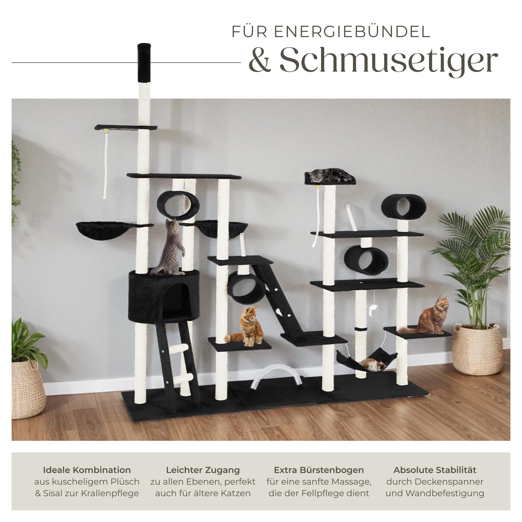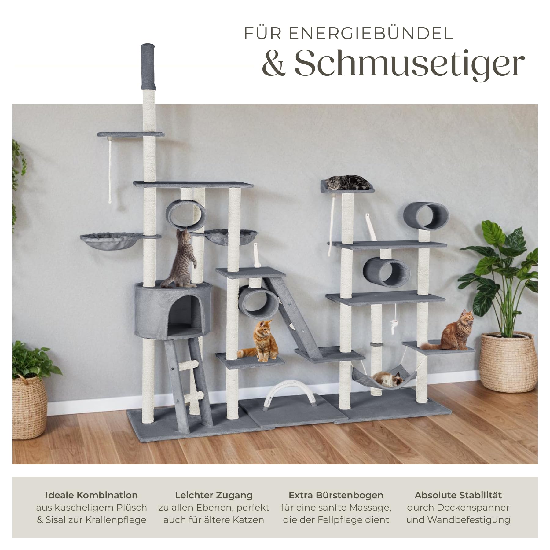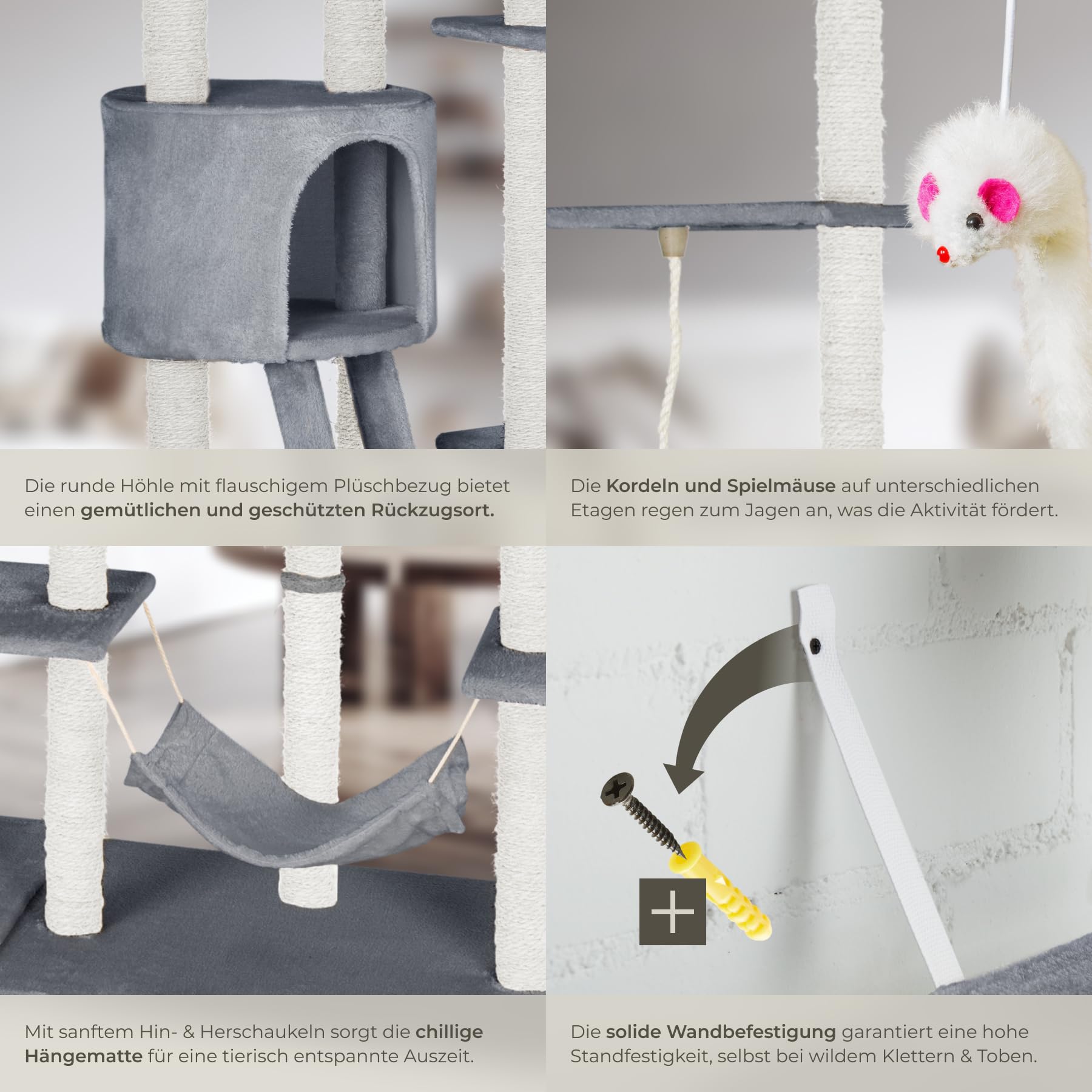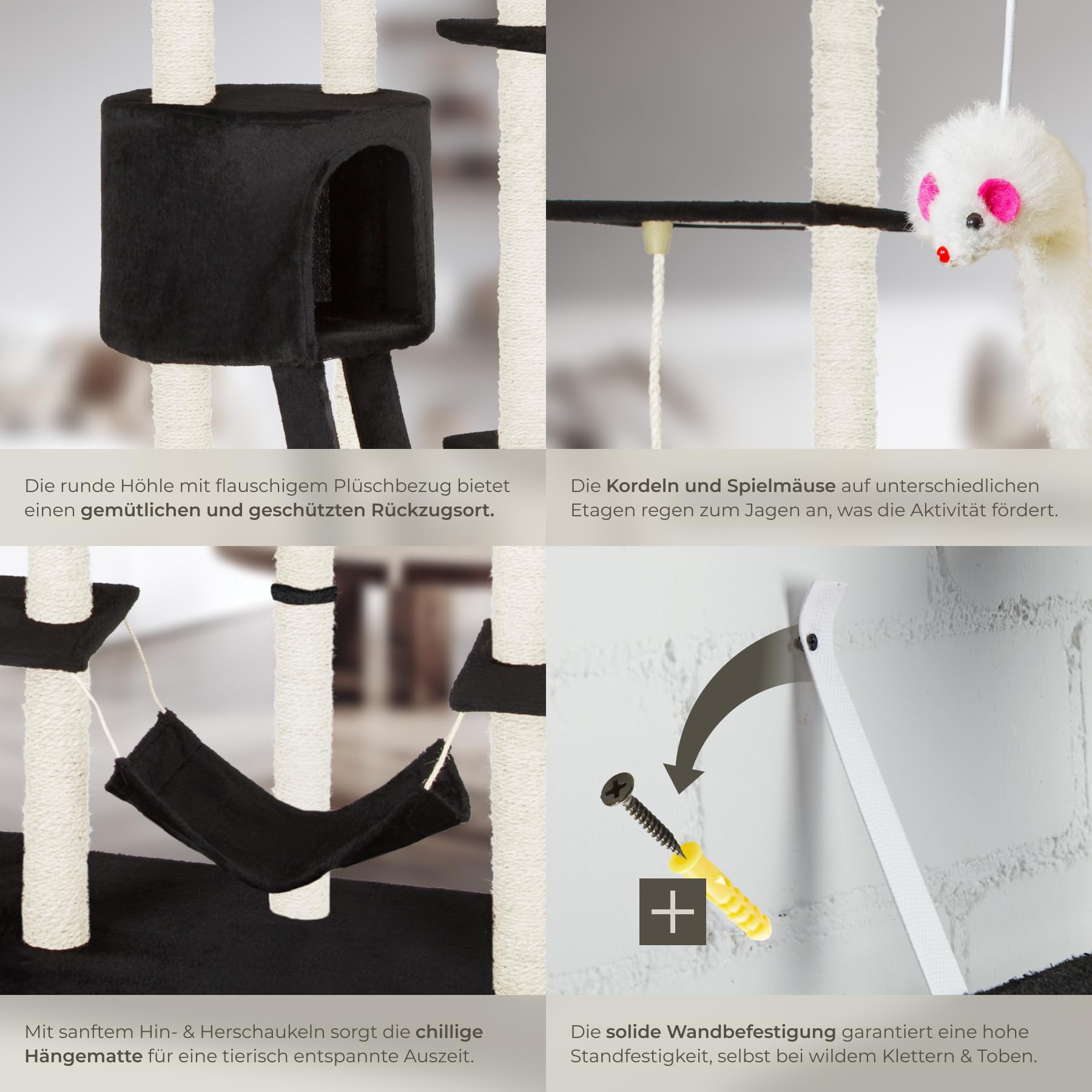 - KATZEN KLETTERWAND AUF MEHREREN EBENEN FÜR ABWECHSLUNG: Mit mehreren Ebenen bietet dieser Kratzbaum deckenhoch jede Menge Platz für Abenteuer. Deine Katze kann auf dem Katzen Baum klettern, sich ausruhen und von einer Ebene zur nächsten springen. Der Katzenbaum XXL ist ideal für neugierige Katzen, die gerne ihre Umgebung erkunden und hoch hinaus wollen.