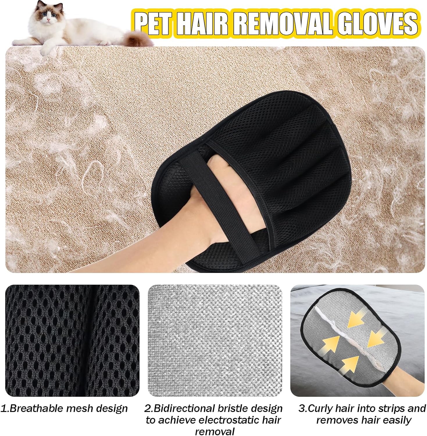 Handschuh, 3 Stück Fell Magnet Handschuh, Haarentfernungshandschuh für Katzen & Hunde