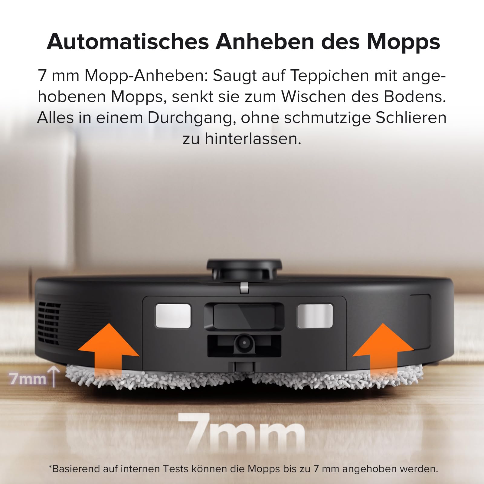 | Special feature | Automatic drying, Automatic dust emptying, Automatic water filling, Robot vacuum cleaner with wiping function, powerful 8000 Pa suction power, 10 mm mop lift, anti-tangle side brush, two liftable rotating mops, removable docking station base, reactive tech obstacle avoidance, PreciSense LiDAR navigation, app control: variable suction power control, multi-level mapping, lock zones, advanced custom cleaning, Flexible schschschschschschEffective pet hair removal, compatible with Alexa, automatic docking, fall protection., Self washing mop See more |