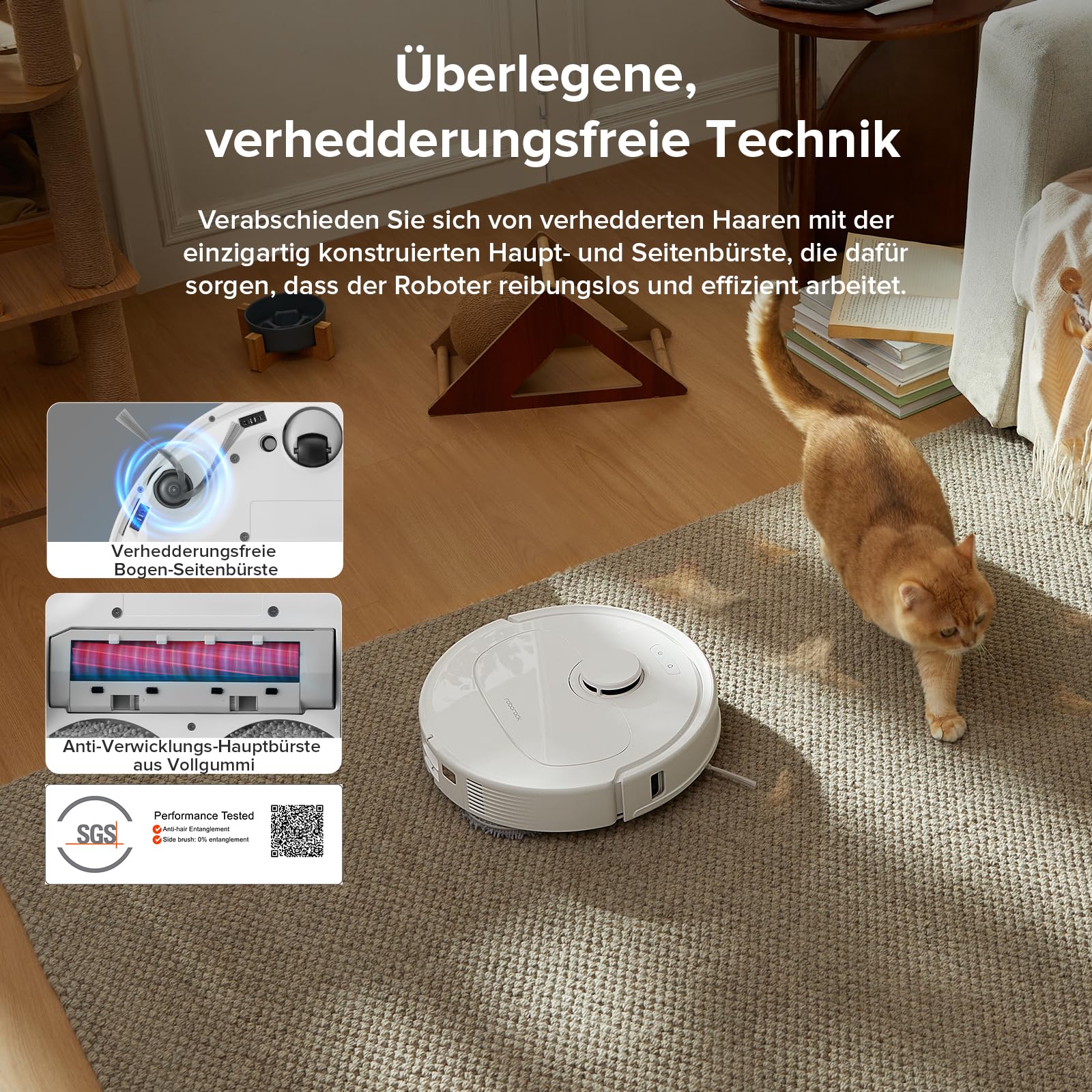- TANGLE FREE BRUSH SYSTEM The upgraded asymmetrical side brush is SGS certified for a 0% hair tangle rate, while the spiral solid rubber brush effectively prevents hair and dirt from getting caught in it. Perfect for homes with pets or long hair - Say goodbye to hair tangles with this innovative robot vacuum cleaner.