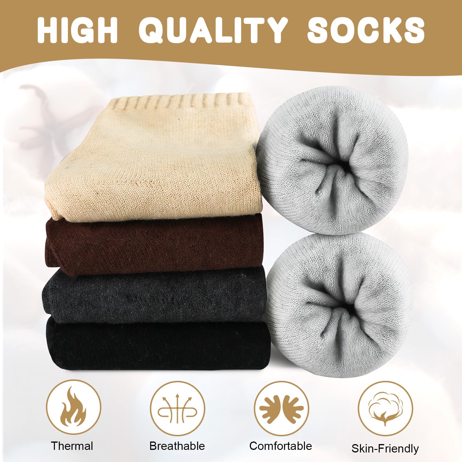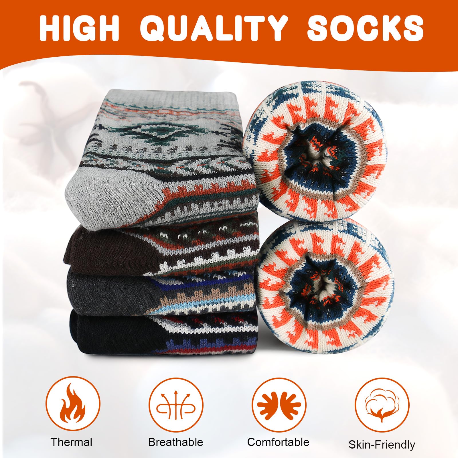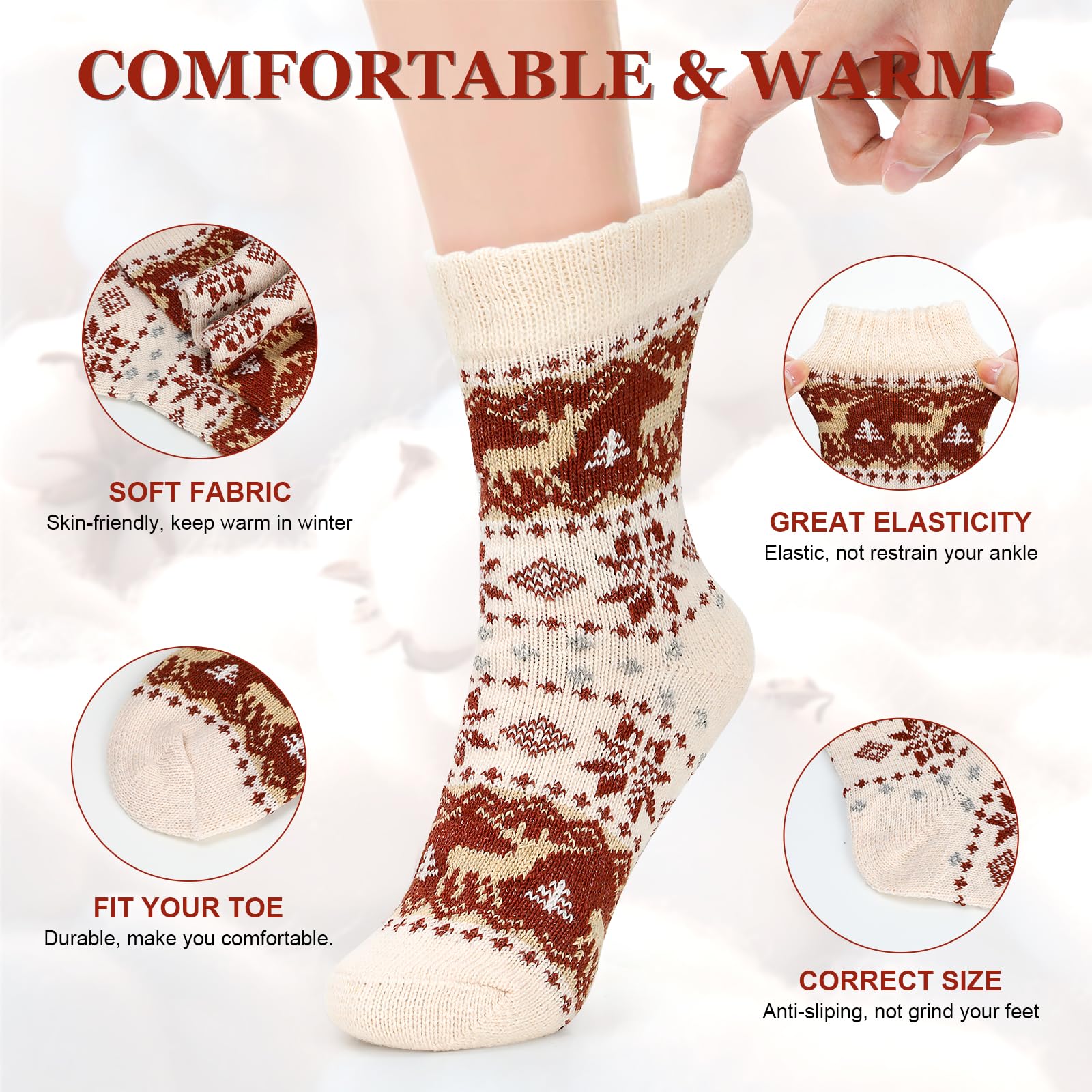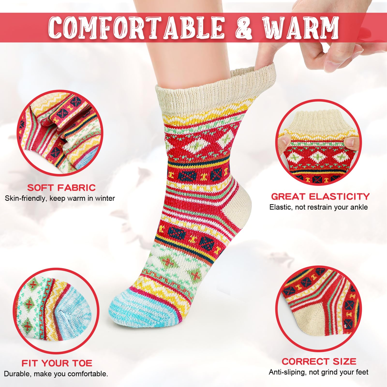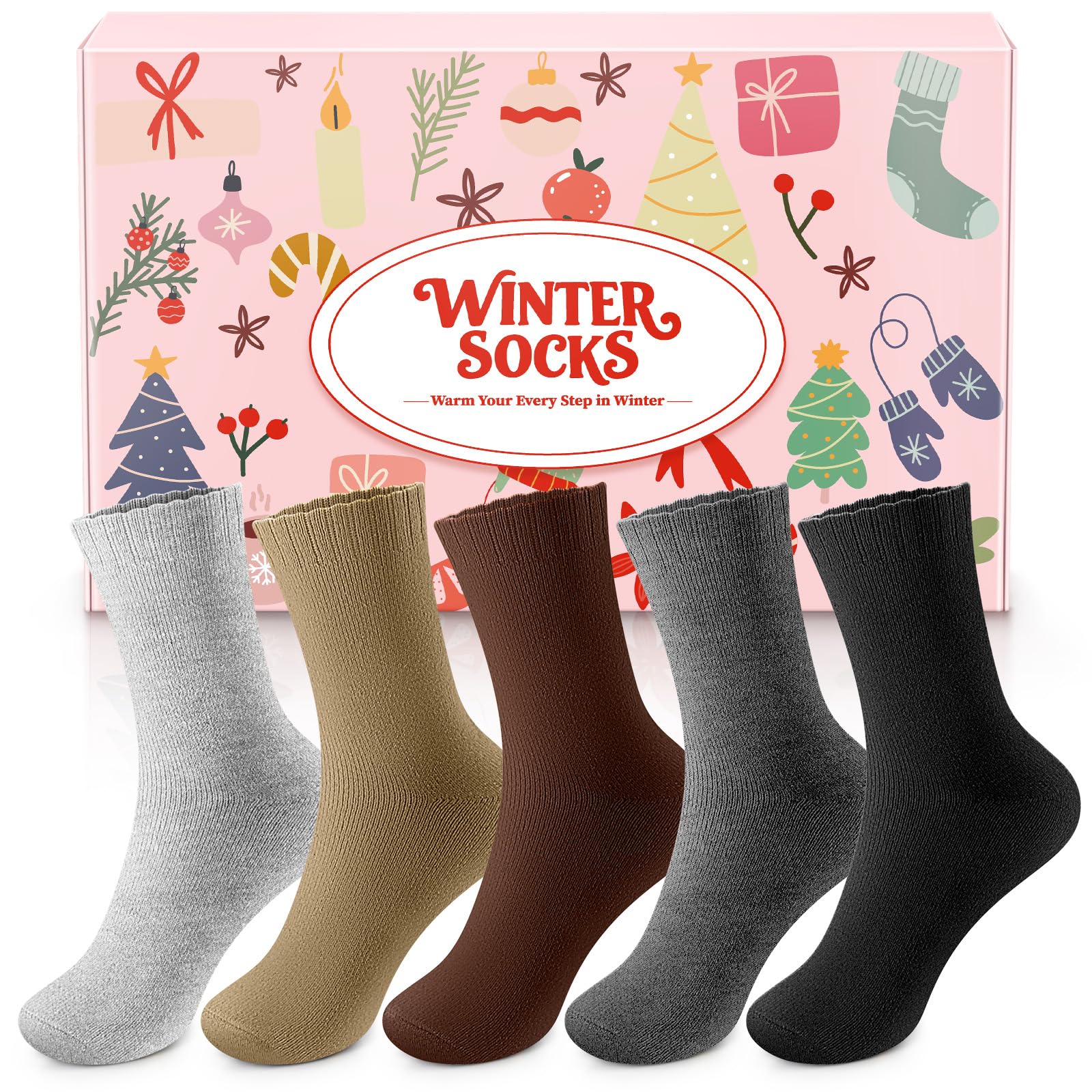 - Warm women’s winter socks with a beautiful design: 5 pairs of warm women’s winter socks in a unique and pretty design to achieve the double effect of fashion and comfort. Women's winter socks are elastic and the length is very reasonable, which can keep your feet warmer. Thermal socks in a vintage and trendy design that match everything you wear, make the cold weather beautiful and bring fun to you and your family.