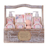 Bade- & verwöhn-set im wohltuenden und fruchtigen White Tea & Apricot Duft - dekorativ in einem Holzkorb im Shabby-Look verpackt!