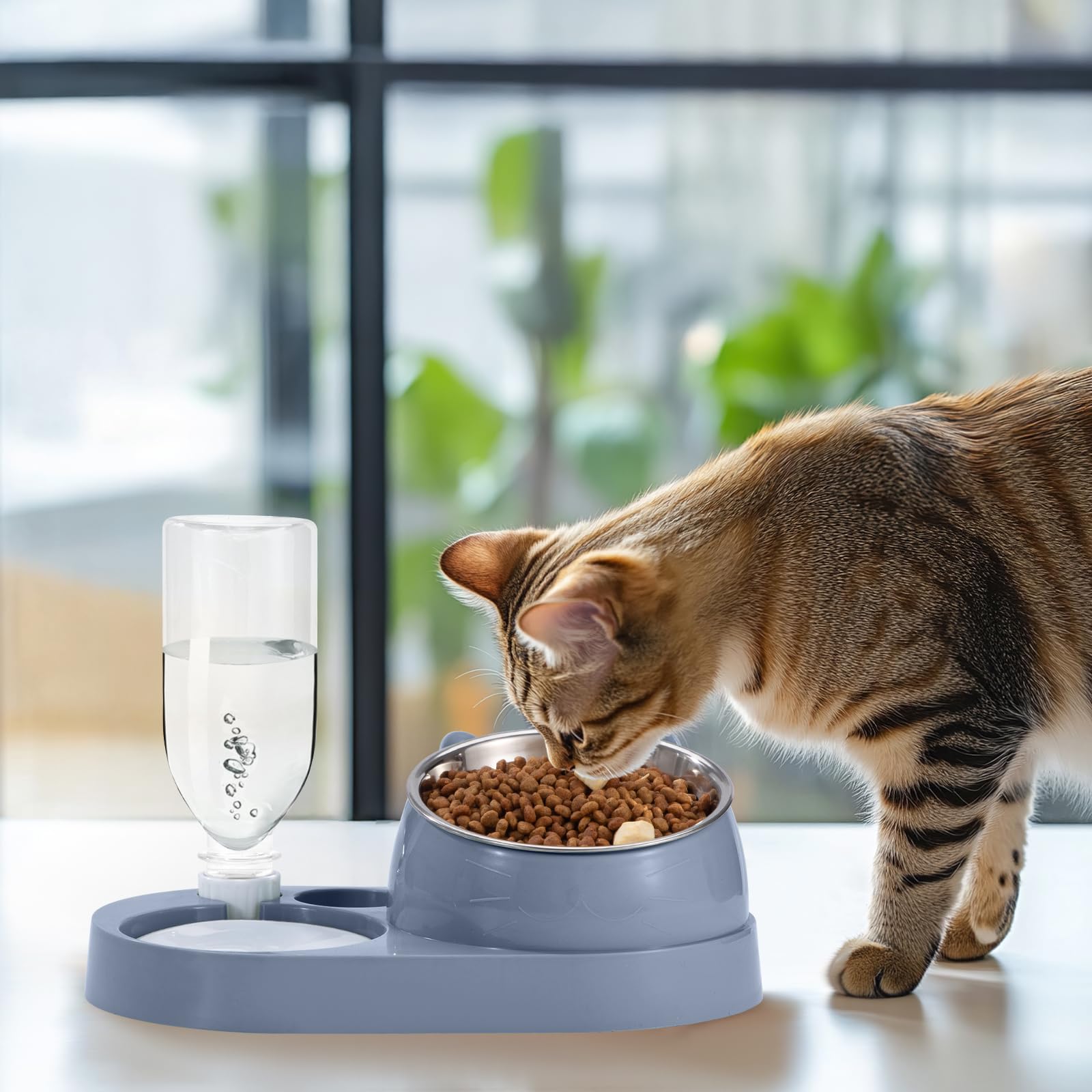 - Cat feeding bowl set of 2: 2-in-1 dog bowl set, one piece contains a set of a 150 g cat feeder and a 300 ml cat water dispenser that allows your pet to eat and drink at the same time.
