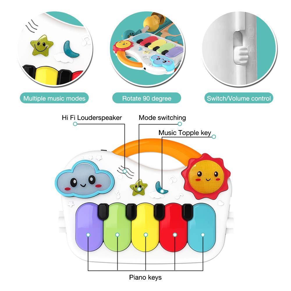 - Baby Musikspielzeug - Eine Taste und eine schöne Note des Baby-Fitnessstudios erzeugen im Piano-Modus einen schönen Klang. Rhythmisches Klopfen oder Spieltraining entwickelt das Musik- und Hörempfinden des Babys und kultiviert sein künstlerisches Talent von klein auf. Sie können den Winkel des Klavierbretts nach Belieben an die Spielhaltung Ihres Babys anpassen, und Ihr Baby wird Spaß haben.