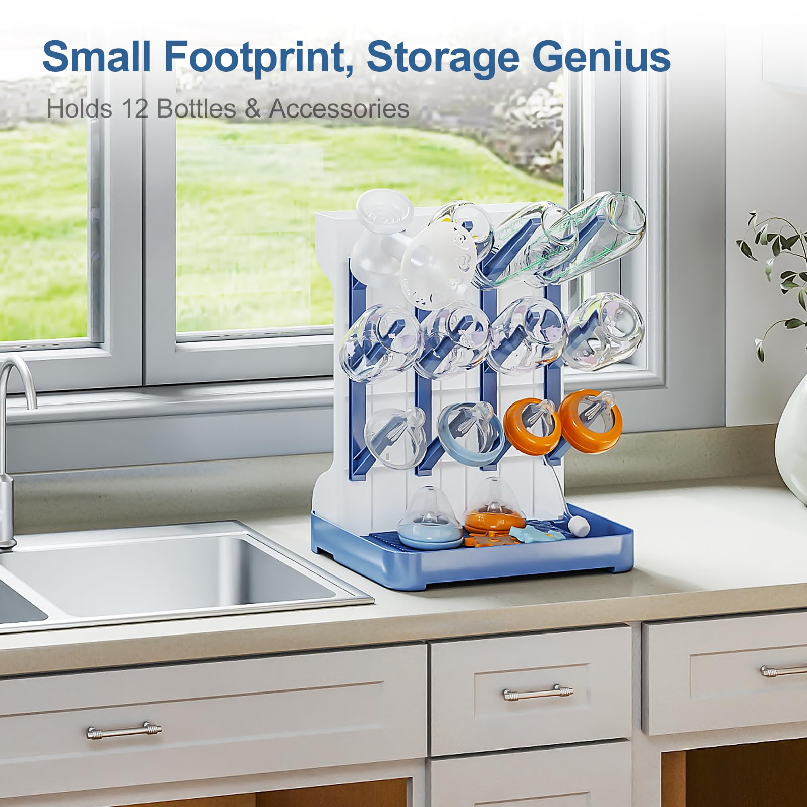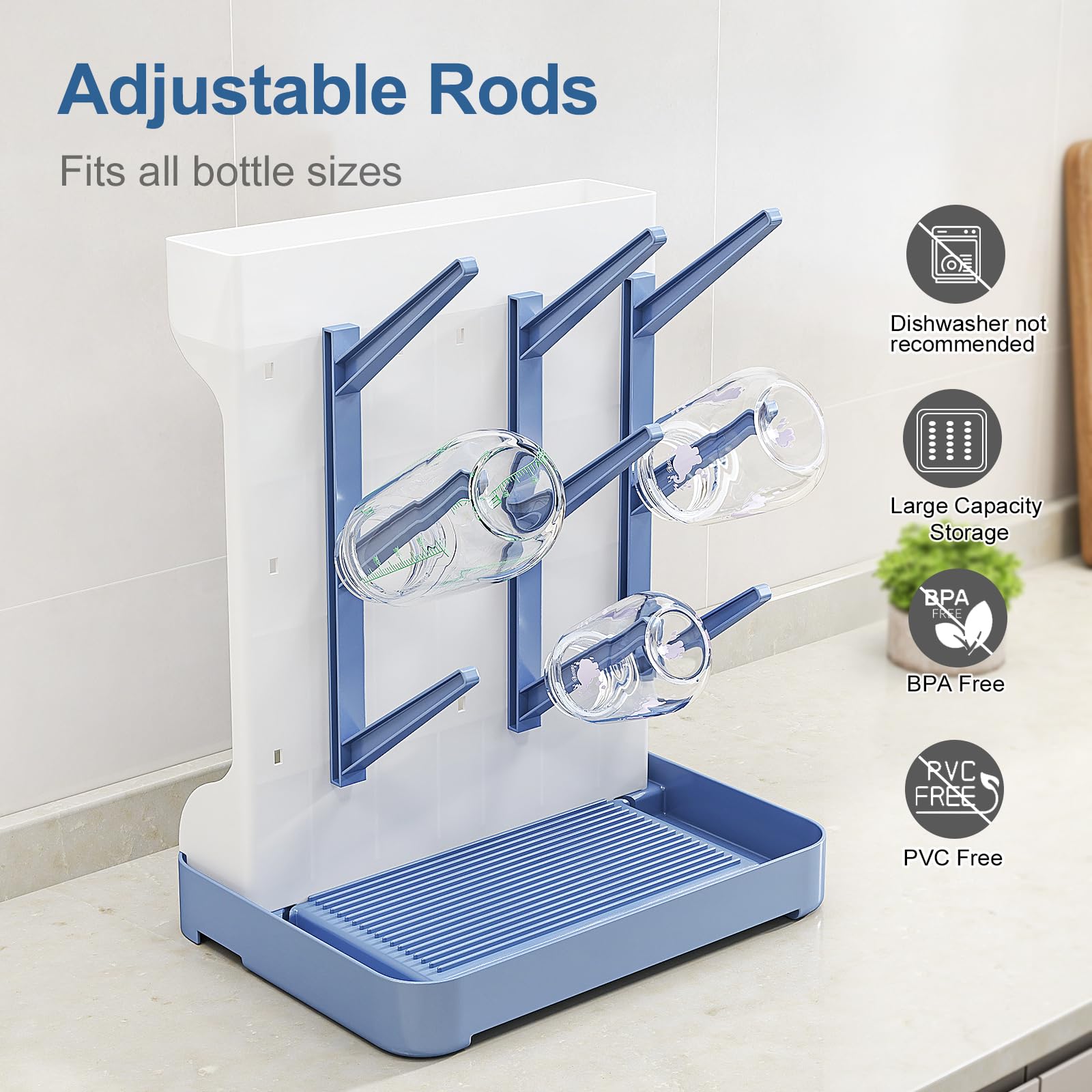- Schnelle Trocknung: Das einzigartige vertikale Luftstrom-Design ermöglicht eine schnellere Trocknungszeit als herkömmliche Flaschenständer. Die abnehmbare Tropfschale verhindert Wasseransammlungen