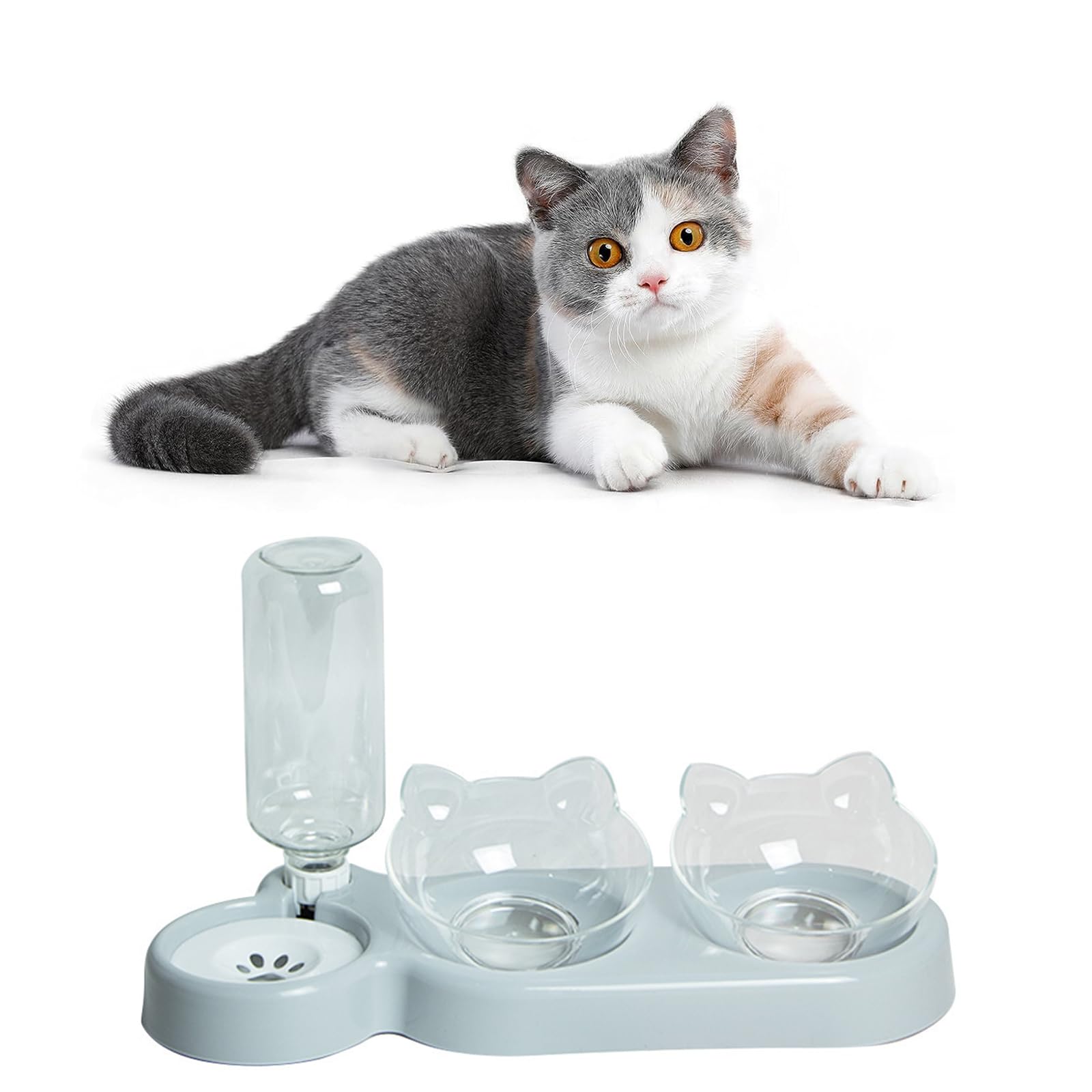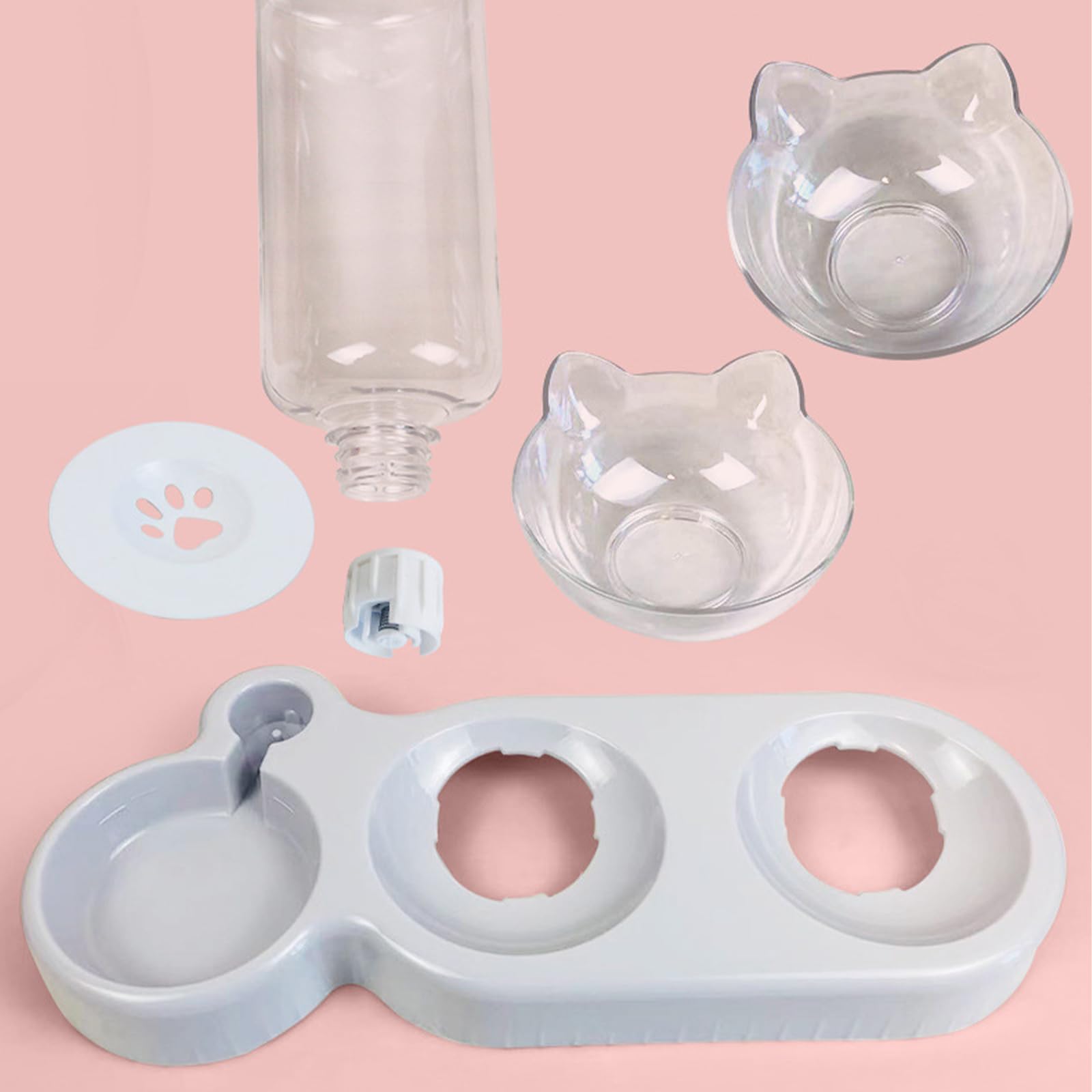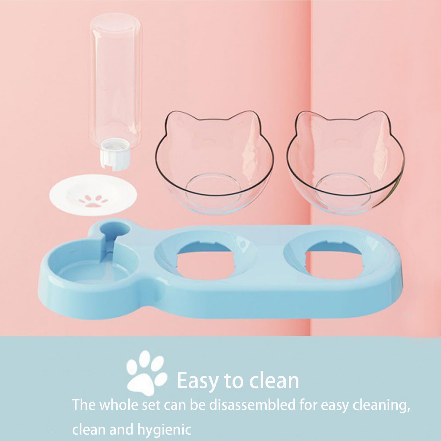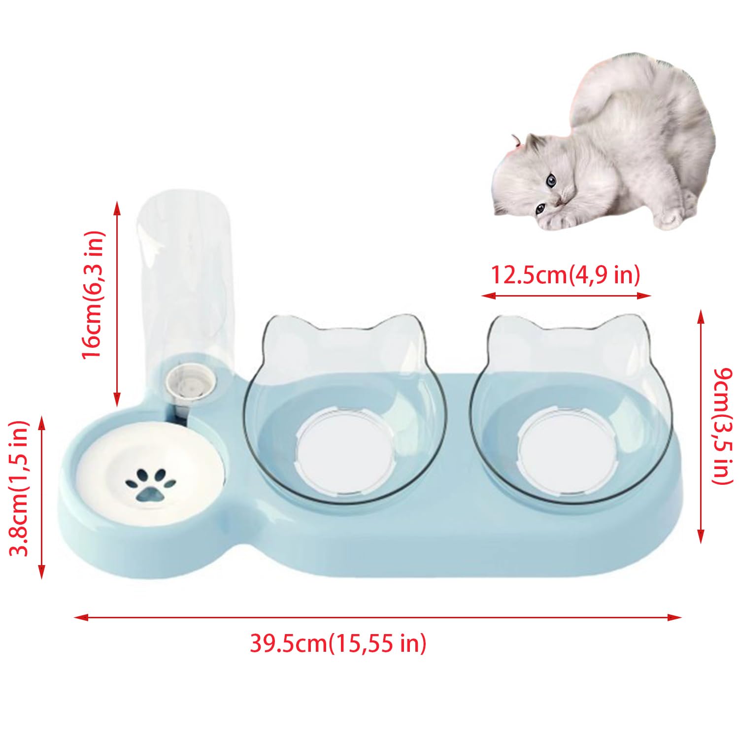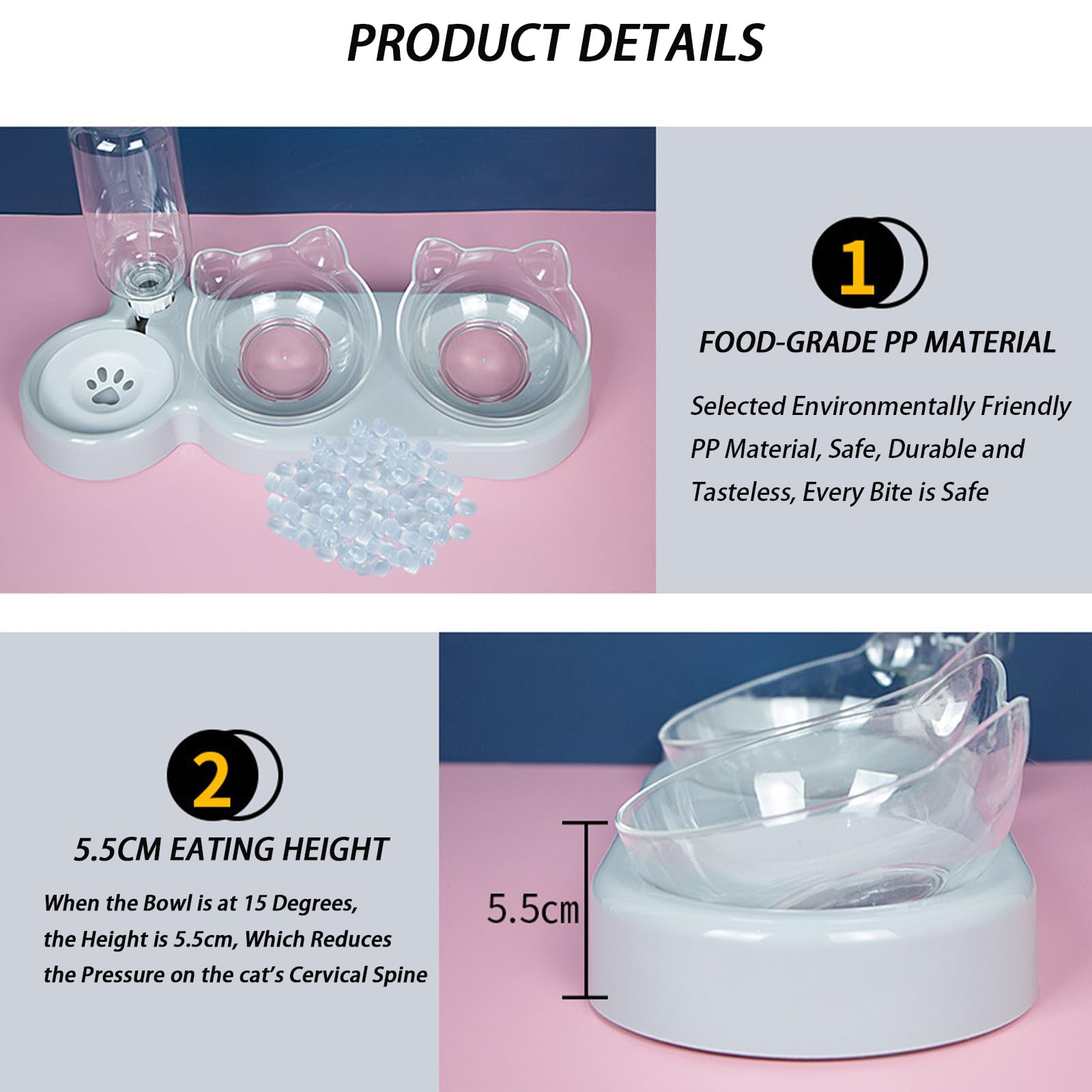 3-in-1-katzennapf, trockenfutternapf, nassfutternapf (snacknapf), wassernapf, erfüllen alle futterbedürfnisse von haustieren, wissenschaftliches essen, zwei katzen können problemlos gleichzeitig fressen.