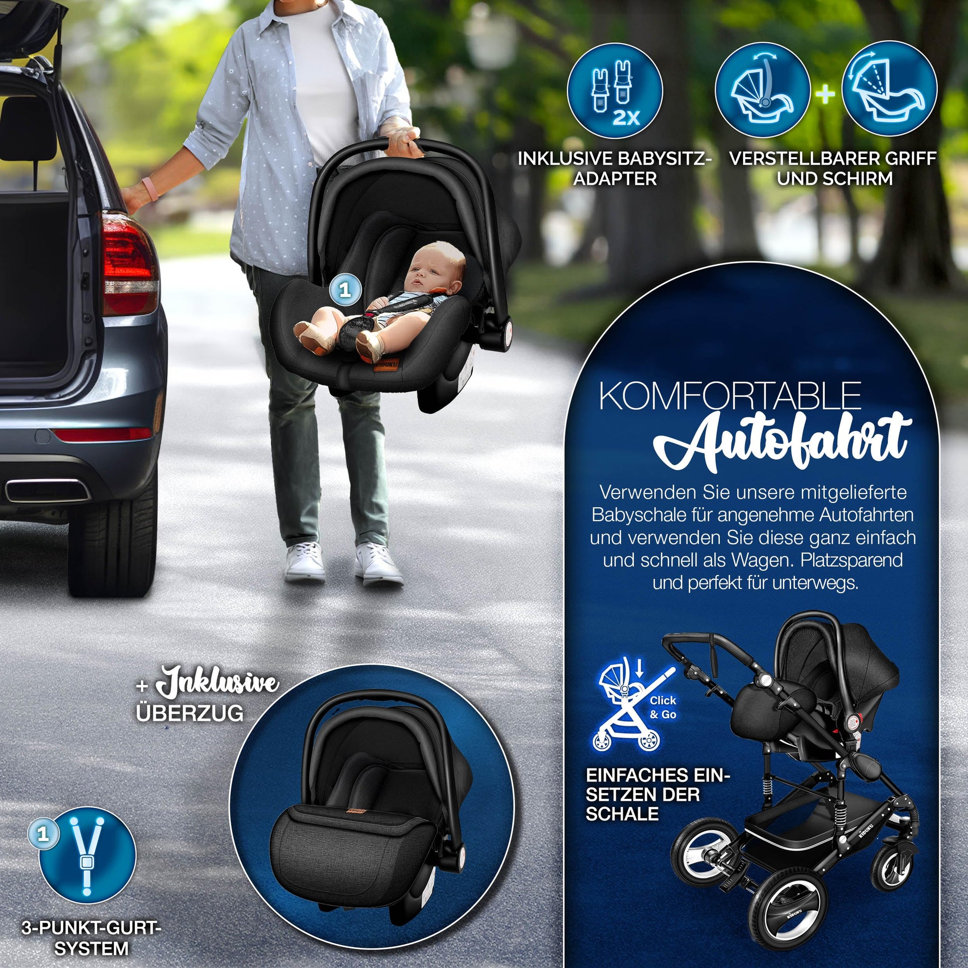 3-in-1 XXL Complete Pram Set incl. Baby Carrycot, Buggy, Sports Seat & Car Seat