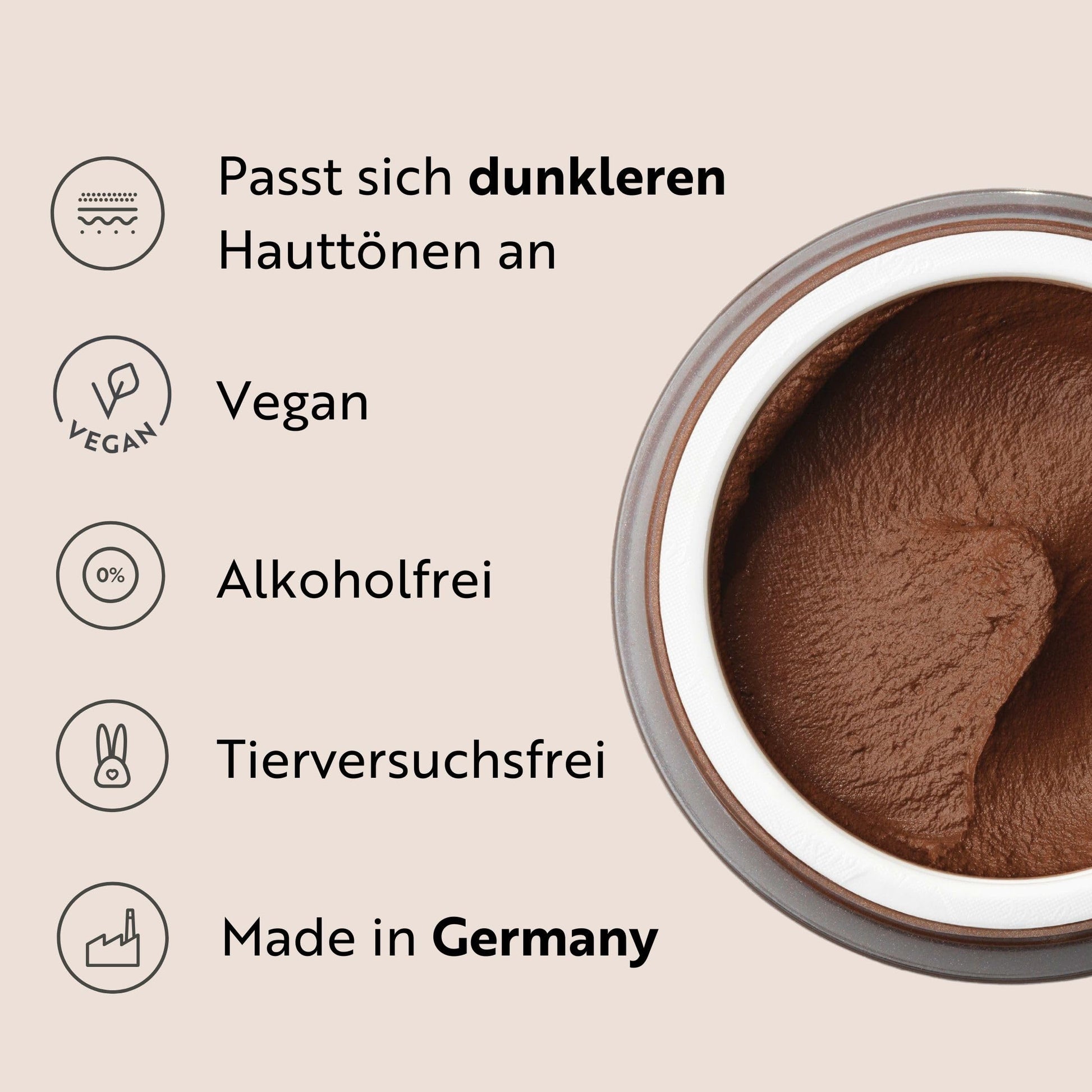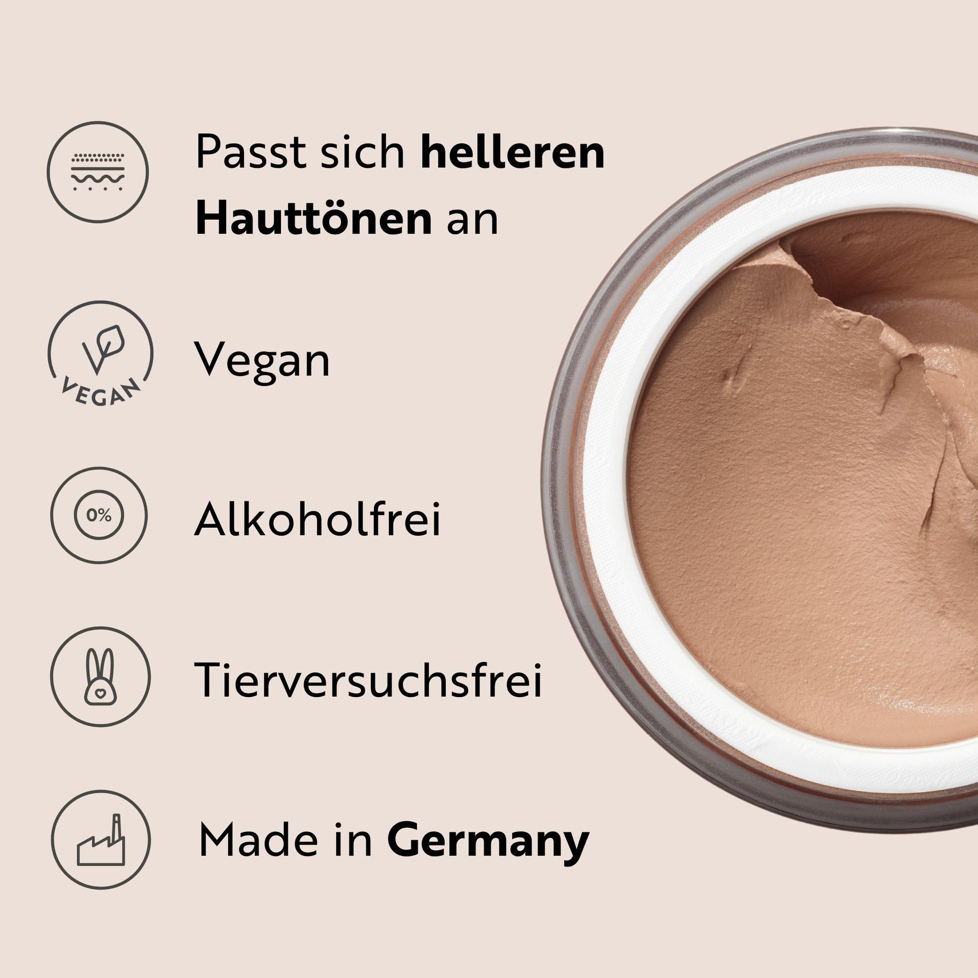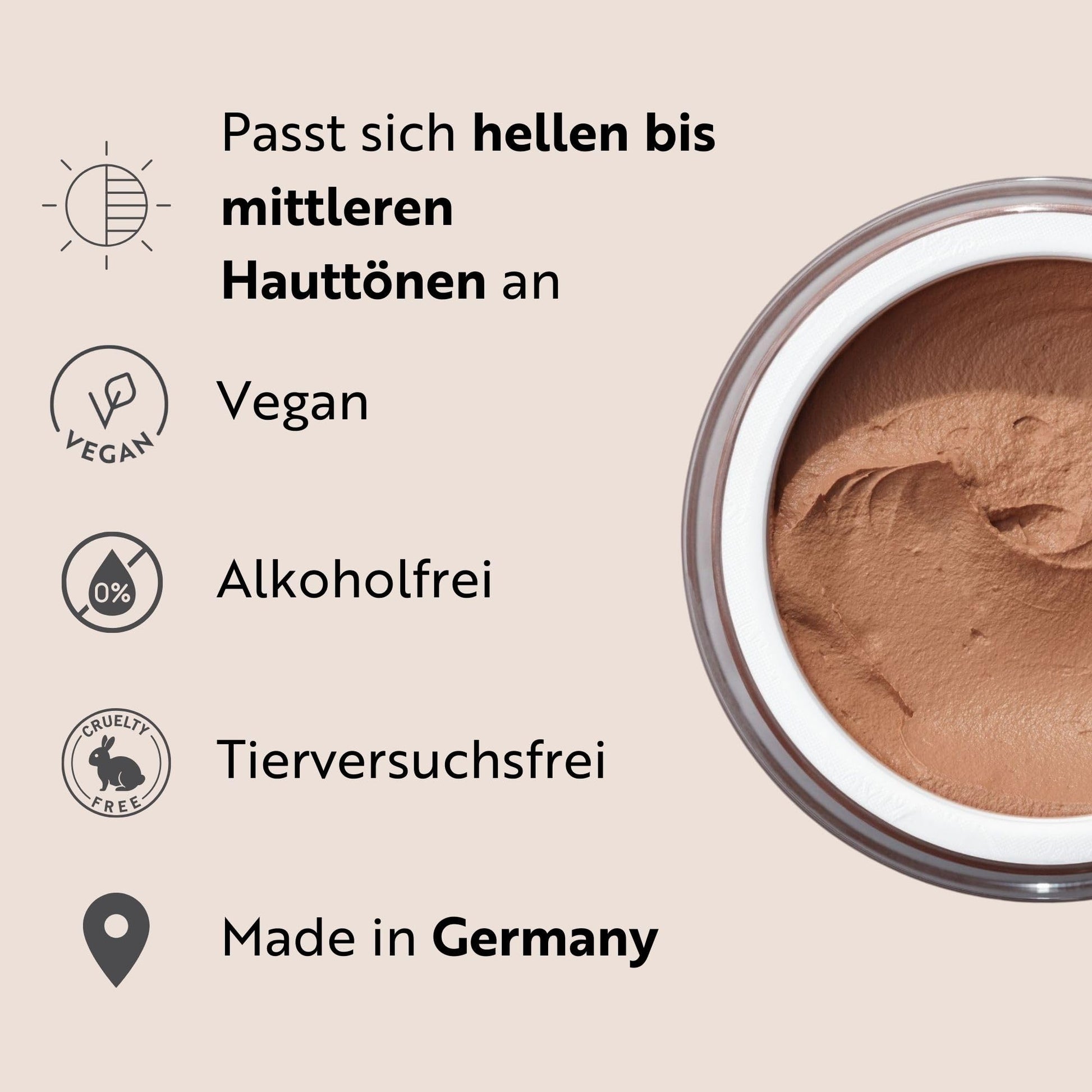 Das Make-up Mousse ist für alle Hauttypen geeignet - somit auch für sensible Haut. Wir empfehlen allerdings, das Make-up Mousse zunächst auf einer kleinen Hautpartie auf Verträglichkeit zu testen.