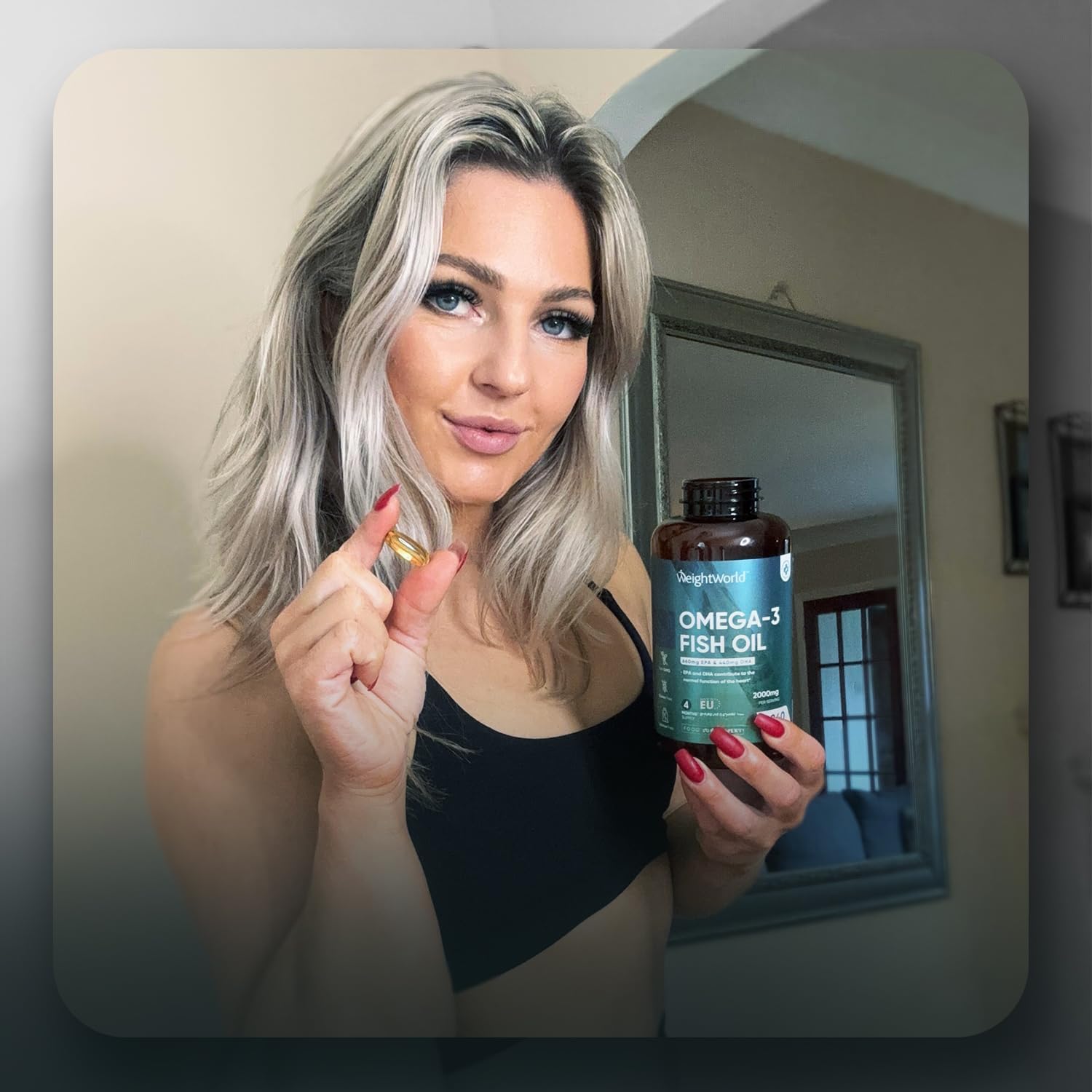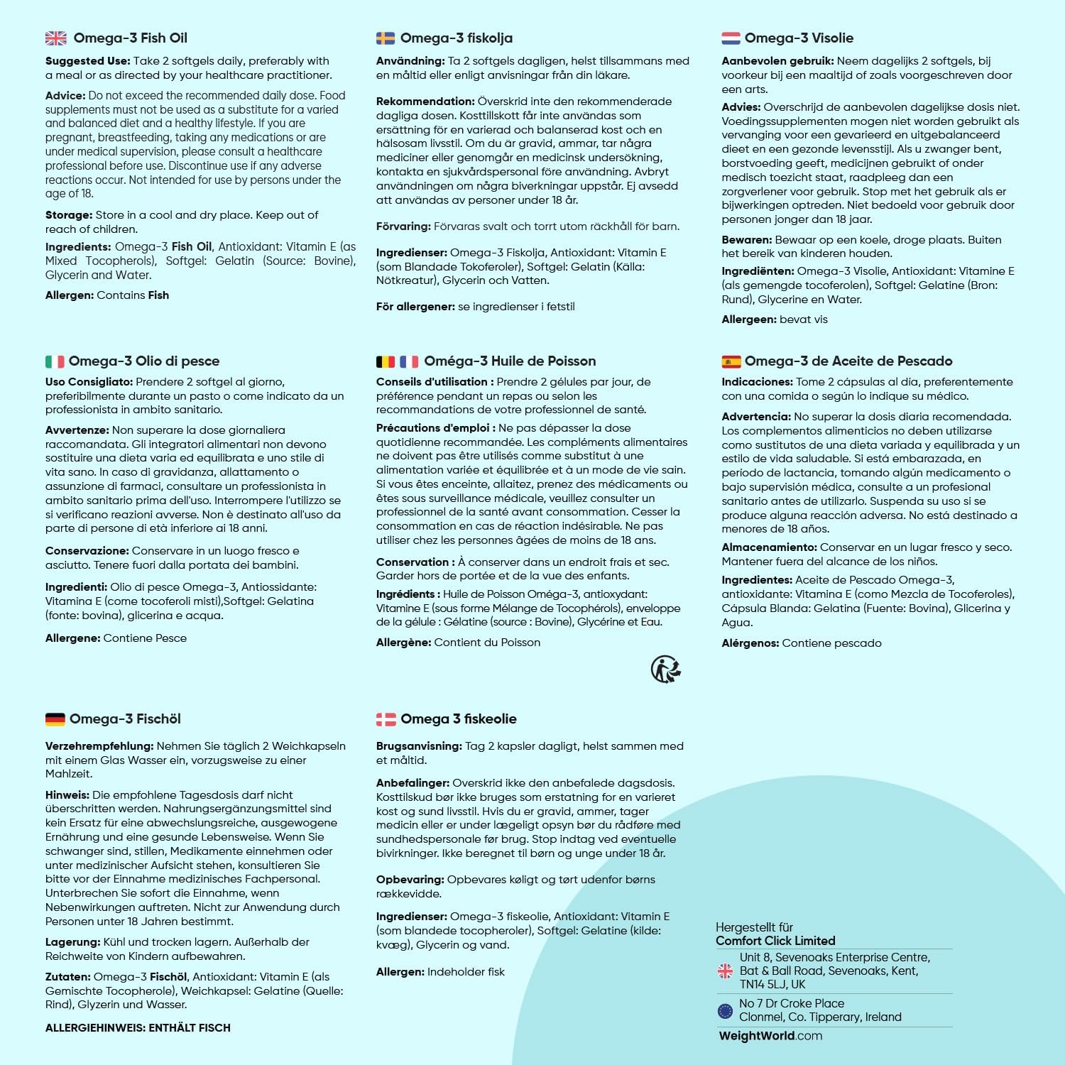 - 2000mg Omega3 öl Kapseln - Jede Portion enthält 2000mg Fischöl, das 1100mg Omega 3-Fettsäuren liefert, 660mg EPA (Eicosapentaensäure) & 440mg DHA (Docosahexaensäure). Die Omega 3 Softgels werden aus Fischöl hergestellt, das essentielle Fettsäuren wie EPA und DHA enthält.
