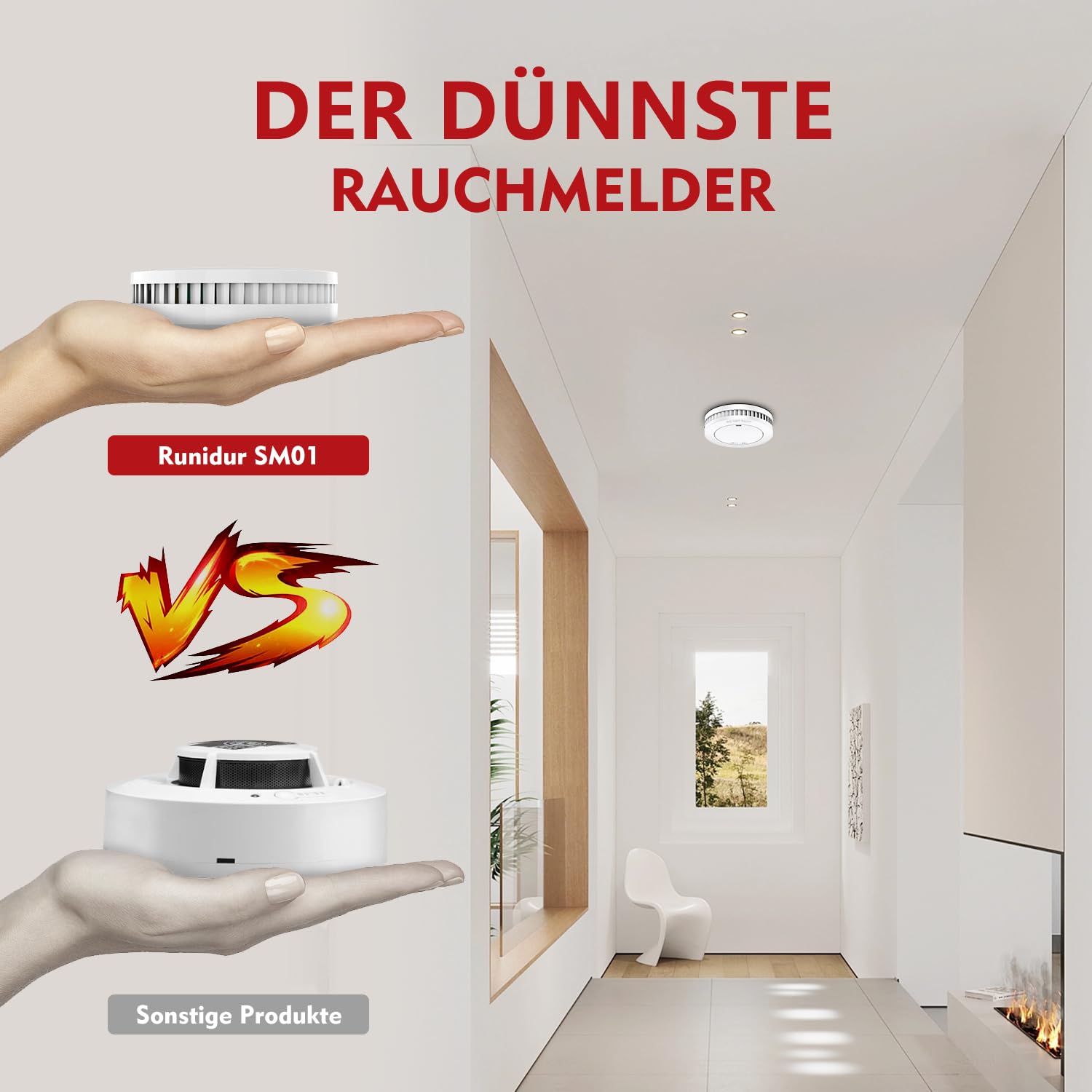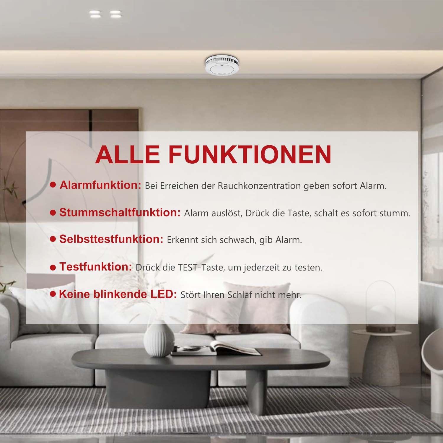 - 【Empfindliche Reaktion Brandmelder】: Durch den Einsatz fortschrittlichste fotoelektrischer Sensoren löst der Rauchwarnmelder innerhalb von 2,5 MS aus, sobald die EU-Mindestrauchkonzentration erreicht ist