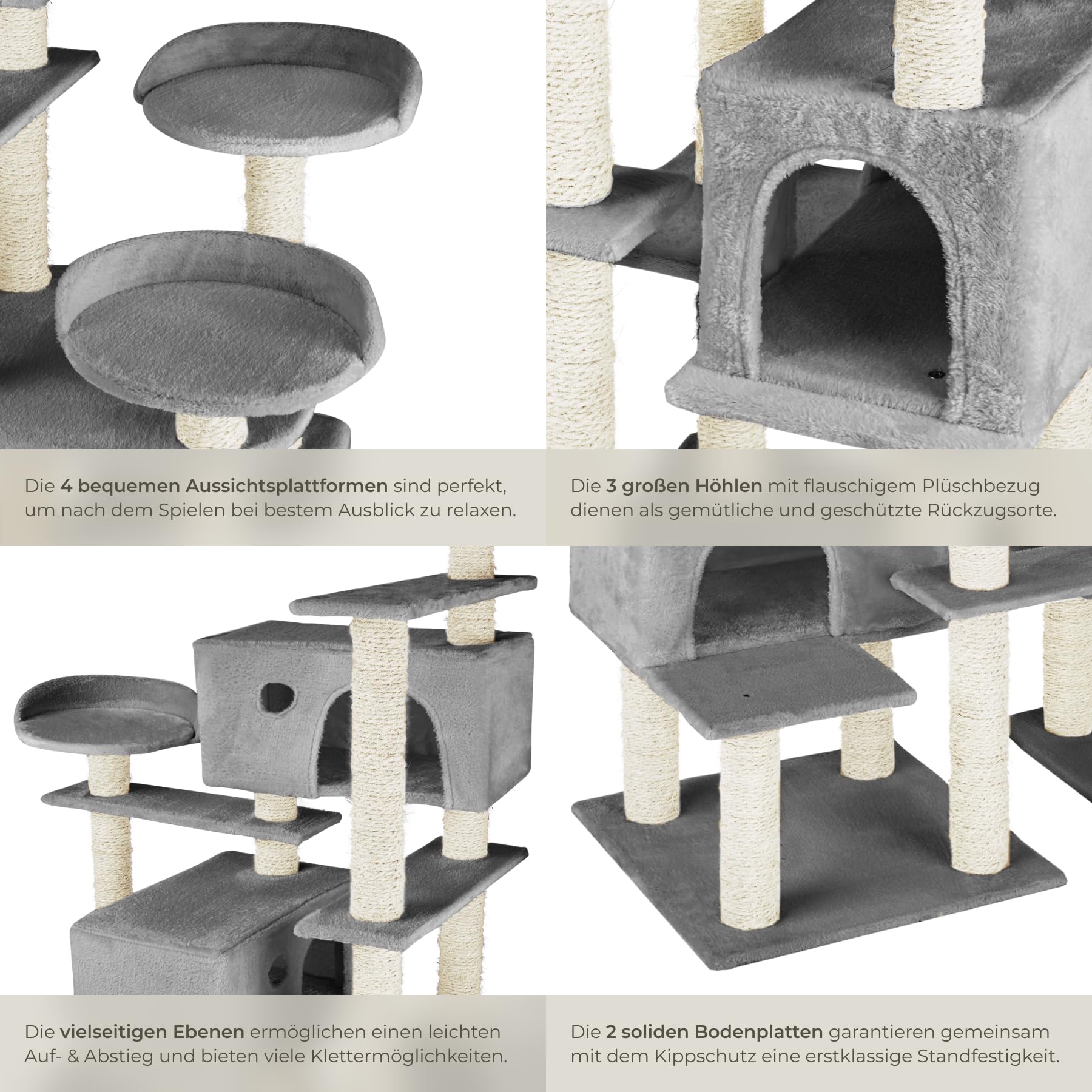 tectake® Katzen Kratzbaum mit Zubehör für Katze groß XXL, Spielturm mit Kratzsäule