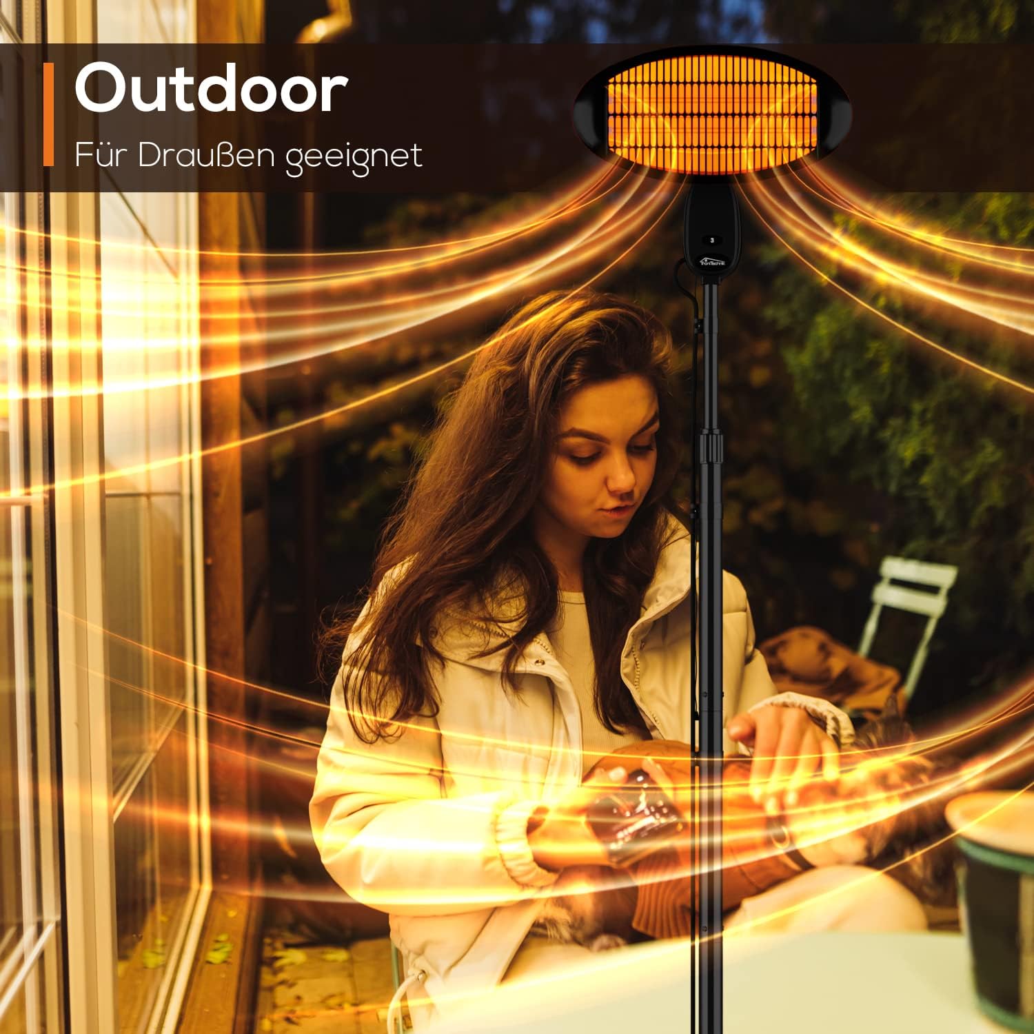 - Individuell anpassbar: Durch die Höhenverstellung von 1,80 bis 2,10 m und den bis zu 45° neigbaren Heizkopf kann die Wärme zielgerichtet ausgerichtet werden. So genießen Sie angenehme Wärme genau dort, wo sie benötigt wird - egal ob beim Sitzen, Arbeiten oder Entspannen.