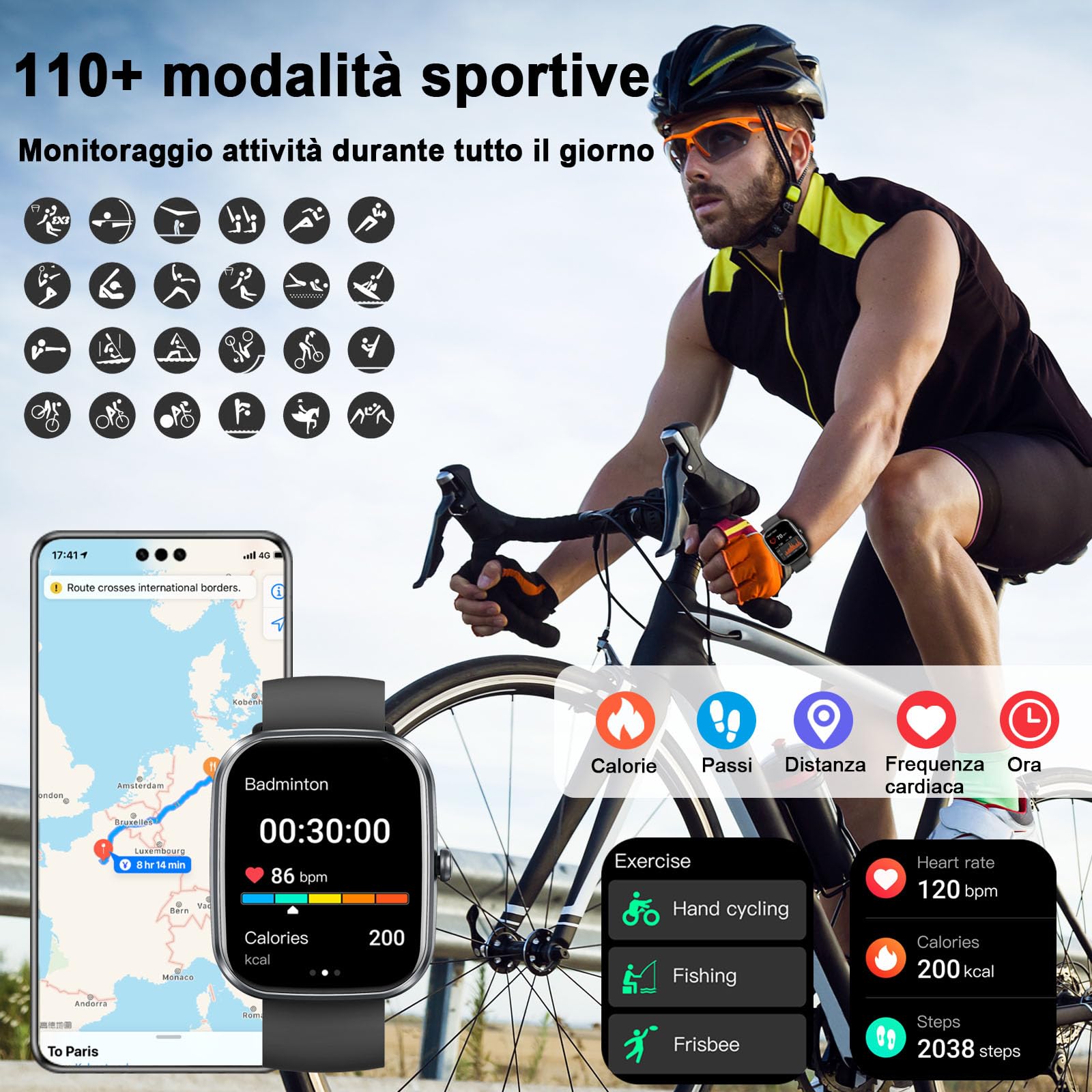 - 110+ Sportmodi und IP68 Wasserdicht: Diese schrittzähler uhr bietet über 110 Sportmodi für Indoor- und Outdoor-Aktivitäten, darunter Gehen, Laufen, Radfahren, Seilspringen, Basketball, Fußball und mehr. Sie erfasst präzise Ihre Trainingsdaten wie Schritte, Herzfrequenz, Kalorien und Distanz. Mit ihrer IP68 Wasserdichtigkeit können Sie Ihre sportlichen Aktivitäten auch bei Regen oder Schweiß genießen. (Hinweis: Es wird nicht empfohlen, es unter der Dusche oder beim Schwimmen zu tragen.)