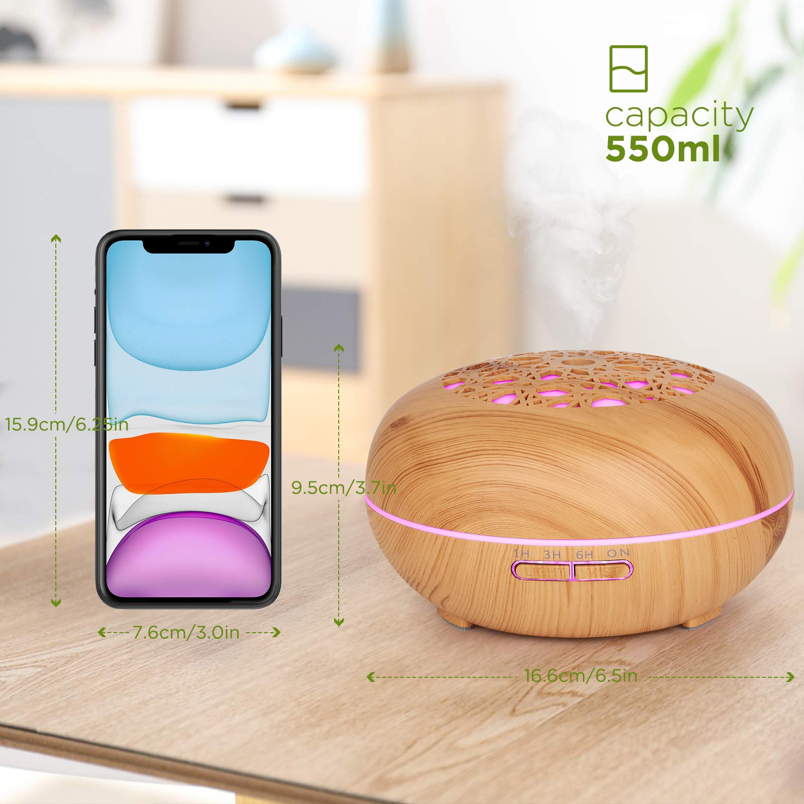 Aroma Diffuser Luftbefeuchter 550ml mit Fernbedienung, Ultraschall Vernebler Duftlampe Öle Diffusor mit 7 Farben LED Wasserlose Abschaltautomatik
